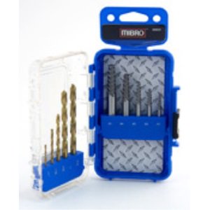 MIBRO screw extractors and drill bits are ideal for removing damaged and broken screws, bolts and other threaded parts. The 10-piece set includes 5 screw extractors and 5 matching titanium-coated drill bits in a case for convenient storage. The drills feature a 135-degree split point tip which allows for fast, straight drilling. The extractors are made from heat-treated high carbon steel and the spiral flutes dig into the screw, increasing grip as torque is applied.Specifications