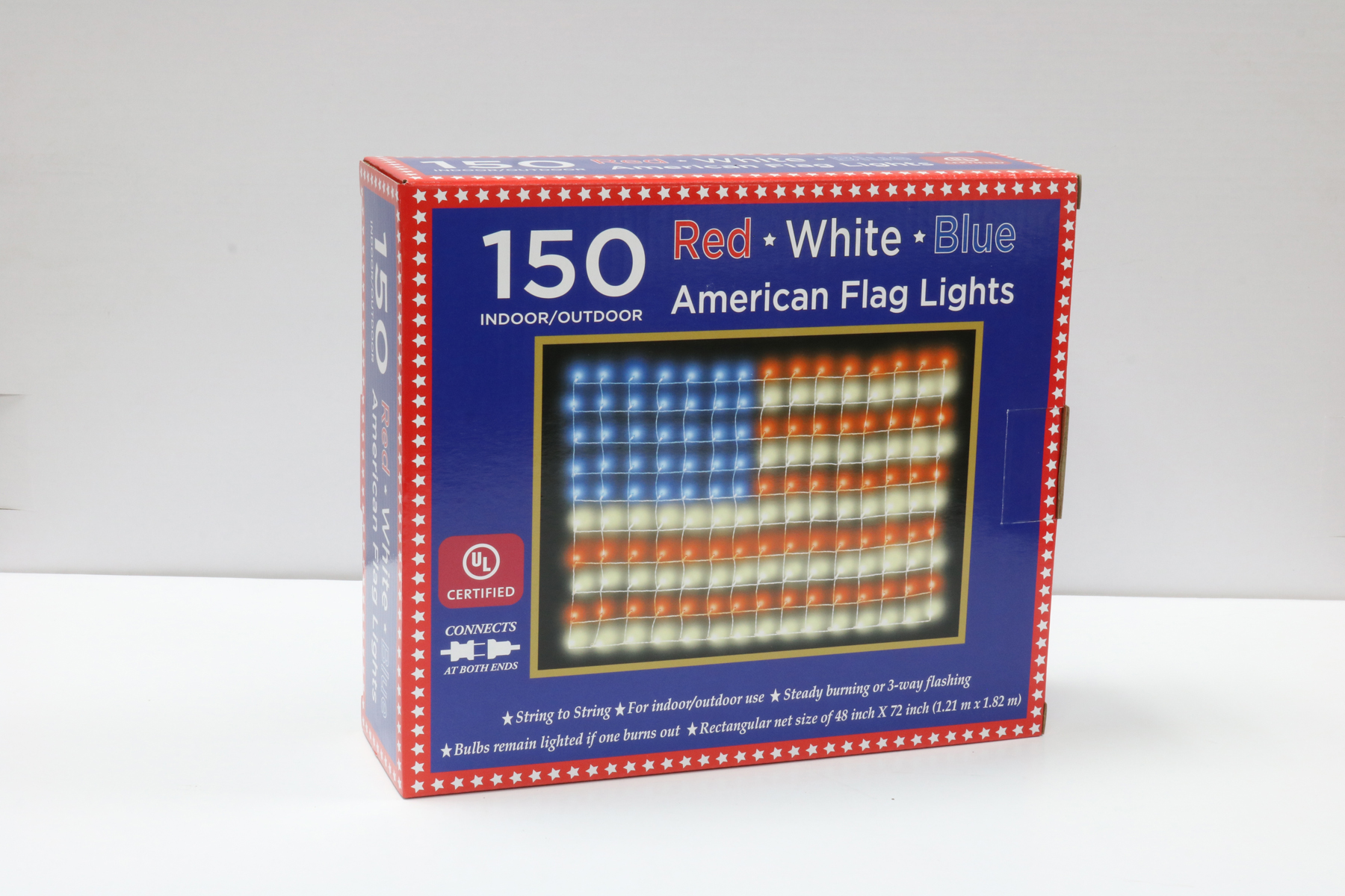 This American flag net lights with three colors which is blue white and red its suitable for gardens parties and festivalsSpecifications