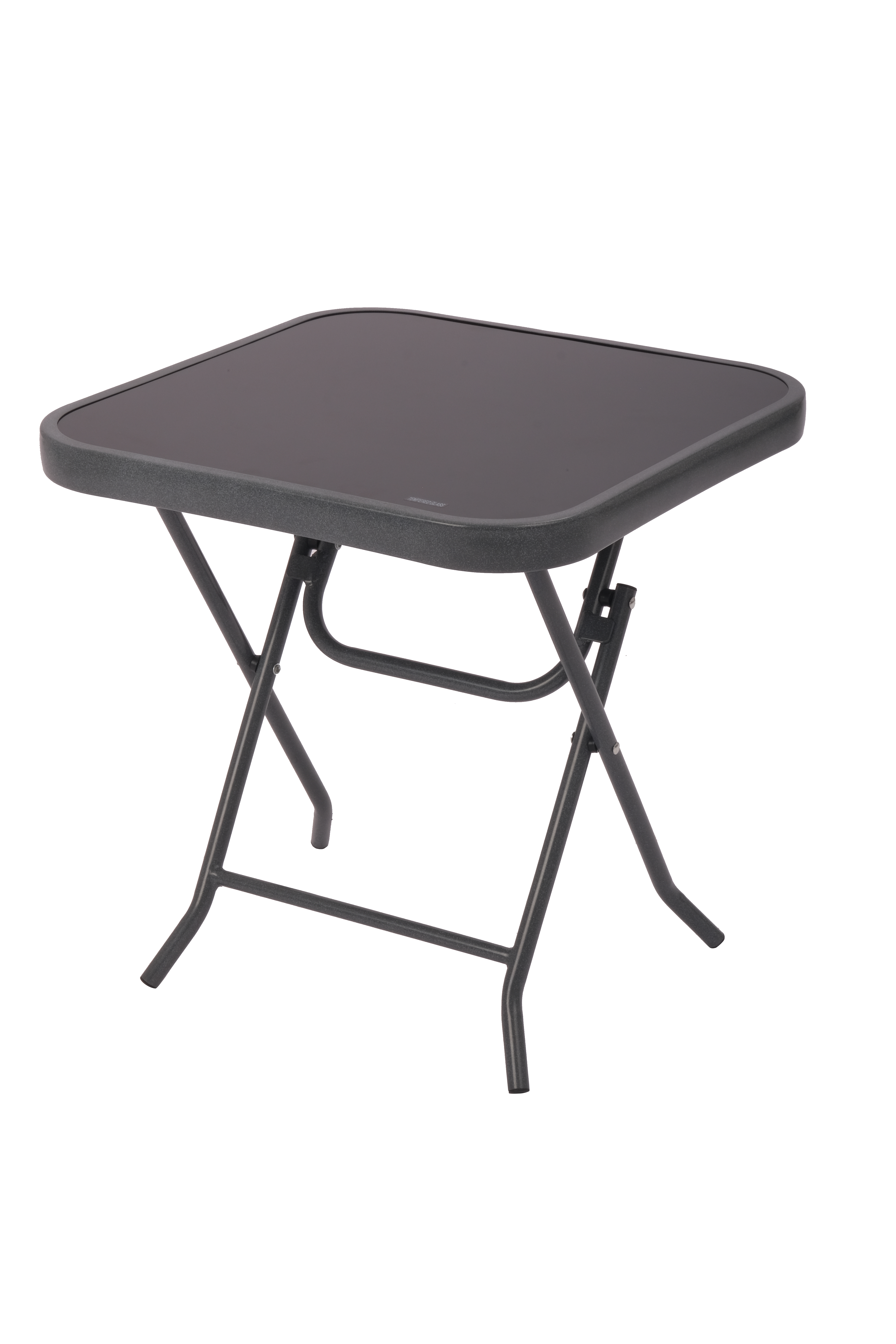Create convenience next to your patio, deck or porch furniture using this steel side table. The square tabletop features a stylish black glass insert that's guaranteed to make your seating area pop. Perfect use for setting drinks, snacks and accents on. When the season is over, the table easily folds down for storage.Specifications