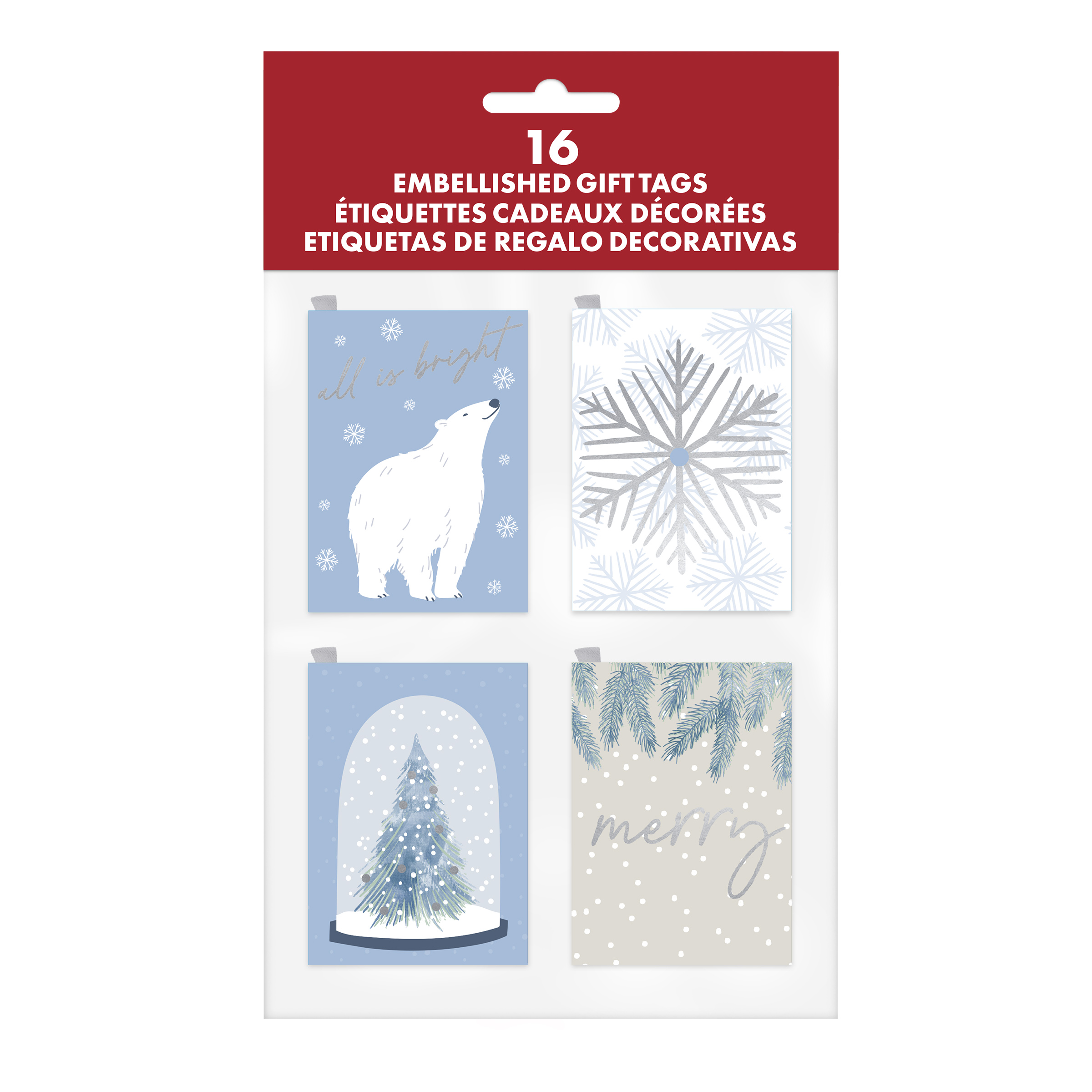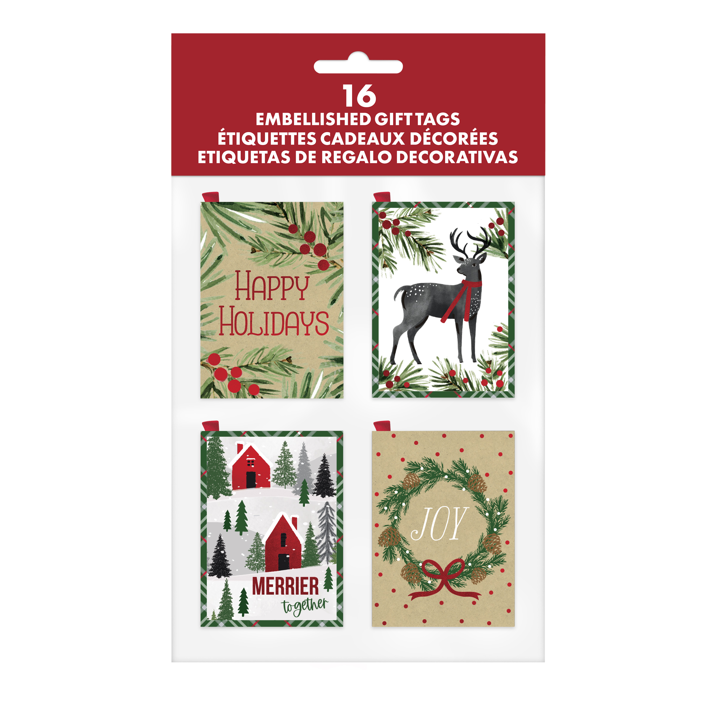 16ct Embellished Gift Tag Quartets; Assorted Designs