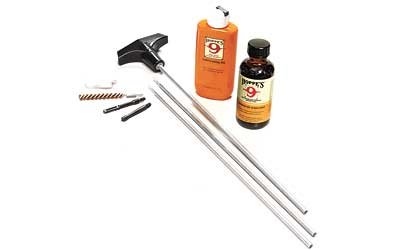 Hoppe's Varmint Rifle Cleaning Kit includes No. 9 solvent, No. 9 lubricating oil, and an aluminum rod with a knob, slotted ends and brush to keep your gun clean and shooting properly.