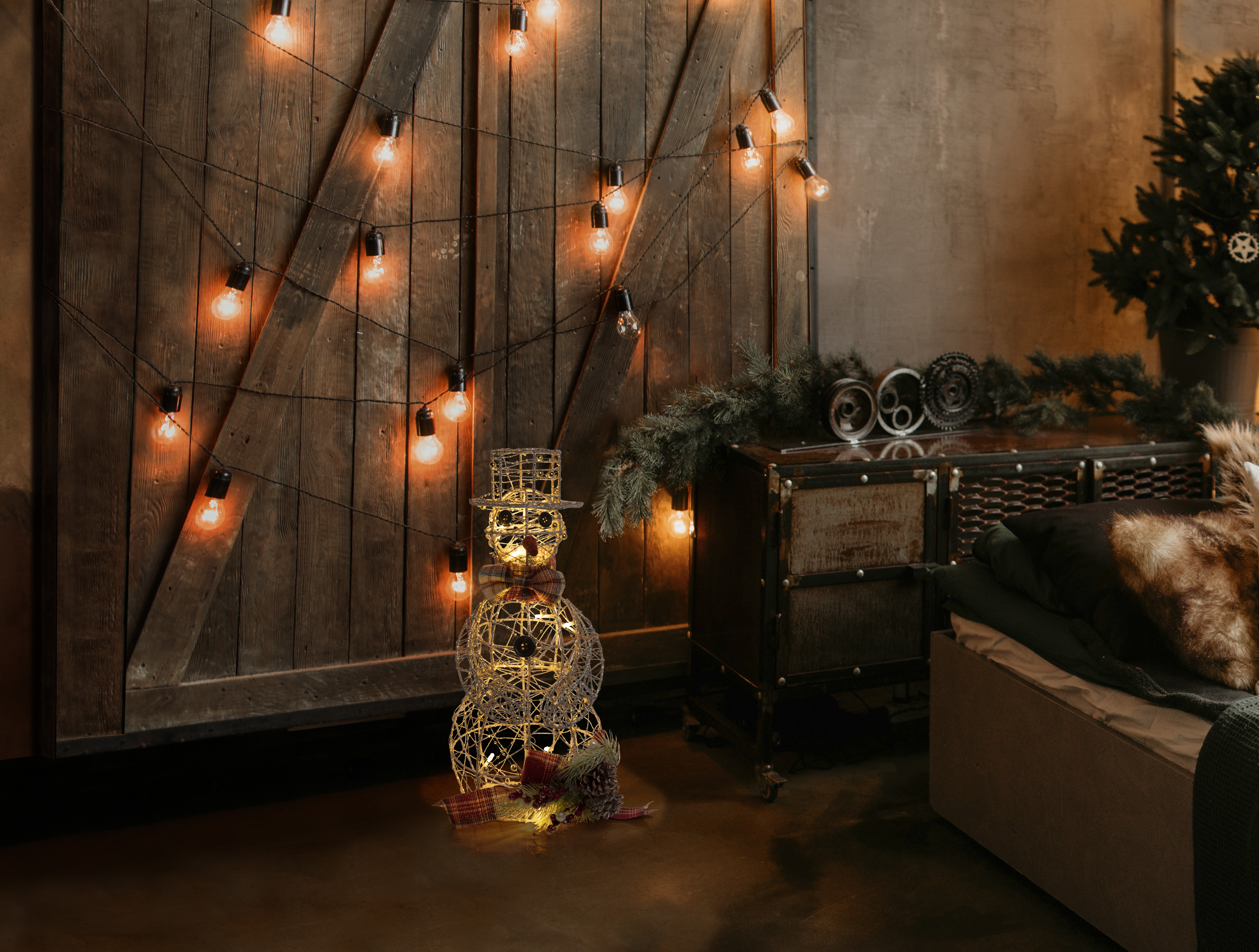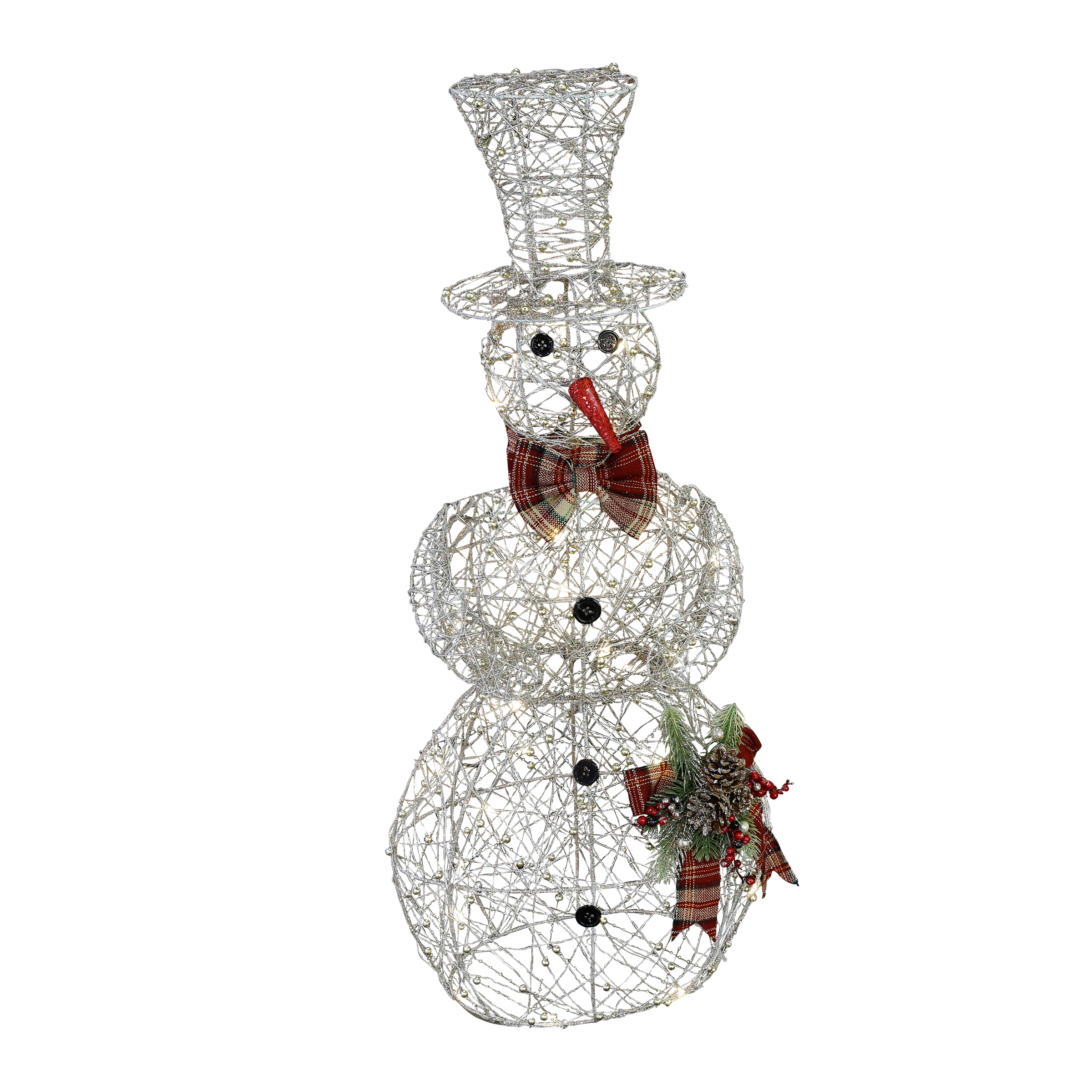 10 LED lights; 18" Gold Wire Snowman; 6 Hour on/18 Hour off Timer; NON-waterproof battery pack