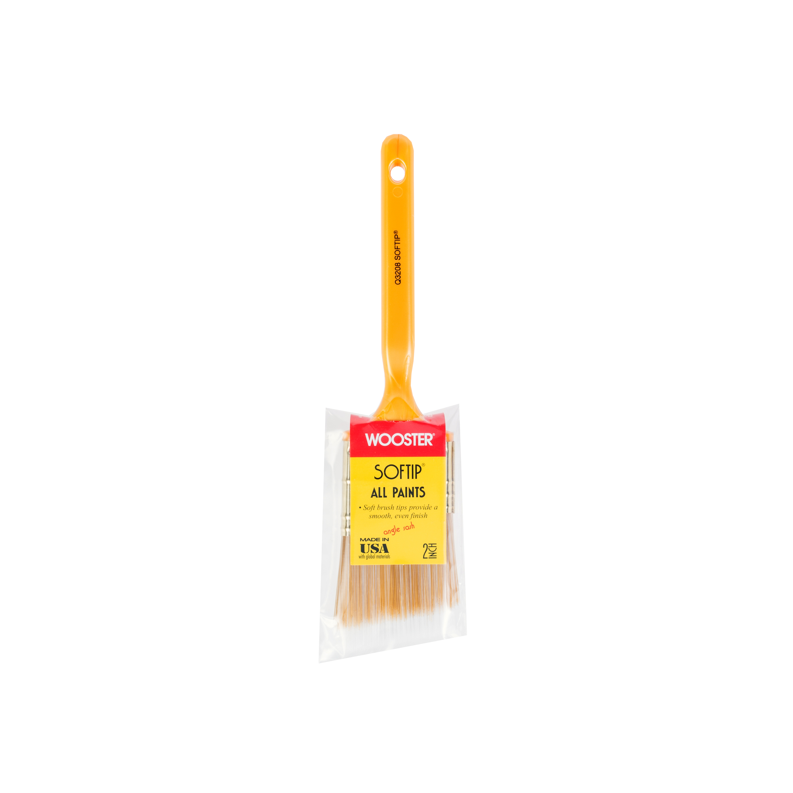 One of the most popular Wooster brushes! Soft brush tips provide a smooth, even finish. The white nylon/gold polyester blend resists wear. Short handle makes the brush easy to control. Good results with all paints-latex and oil-based.Specifications