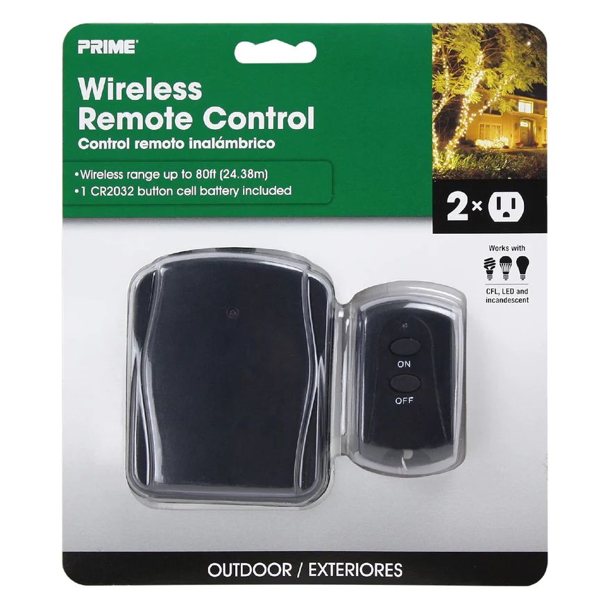 This 2-outlet adapter plugs into any outdoor receptacle and enables you to control whatever is plugged in with w remote control. has up to an 80 FT wireless range outdoors. Signal works best with an unobstructed view between receiver and remote. It's great for use with outdoor lights, holiday lighting and electrical yard decorations.Specifications