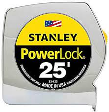 PowerLock 25' Tape Measure features a 1" wide, Mylar-protected blade with a 7' standout. Heat-treated spring stands up to repeated use. 16" and 19-1/5" stud center markings simplify framing jobs. Secure blade lock doesn't creep during measurements. Three-rivet, corrosion-resistant hook allows accurate inside/outside measurements. Tape measure offers positive blade lock and attached belt clip. Tru-Zero hook acts as a pivot for drawing circles and arcs.Stanley PowerLock Tape Rule, Chrome, 1 Each (Quantity).Specifications
