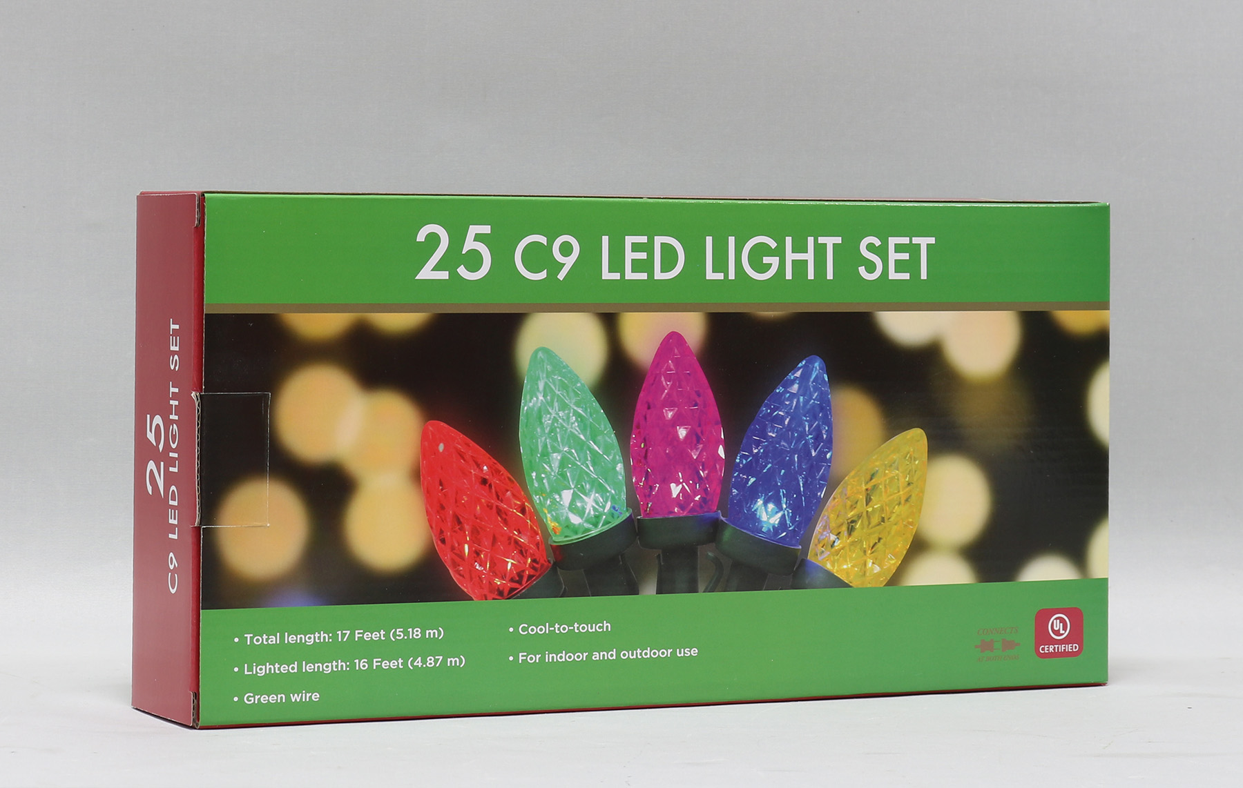 6.3 x 2.36 x 12.6 inch; FOR INDOOR AND OUTDOOR USE; GREEN WIRE/MULTI LED BULBS
