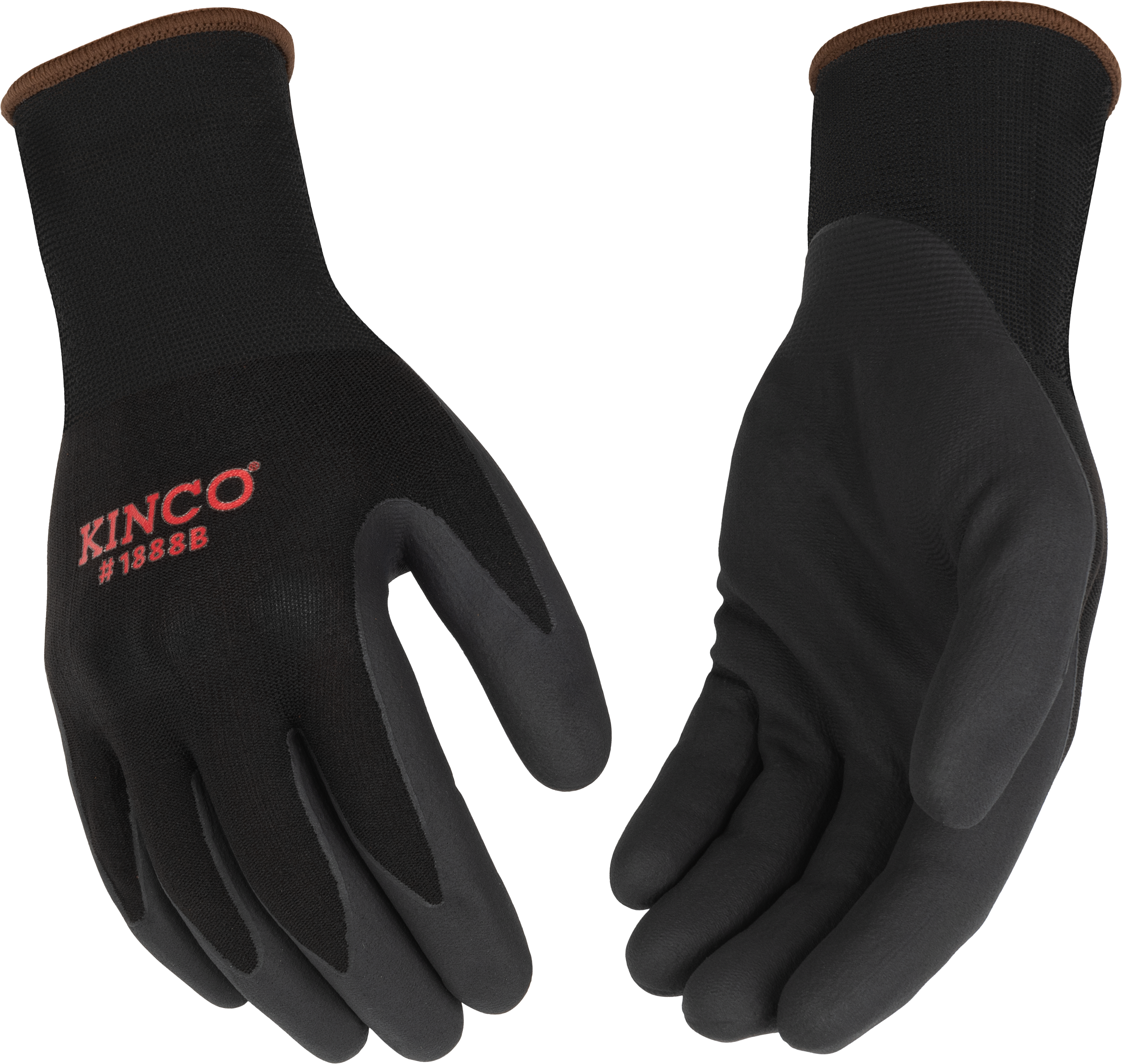 Black 15-gauge nylon-spandex knit shell stretches while maintaining its strength; Black CoolCoat breathable micro-foam nitrile coated palm keeps hands cool & dry while providing dependable grip dexterity & resistance to light oils; Continuous nylon-spandex blend & elastic knit wrist provides a snug fit that helps to prevent debris from infiltrating the glove; Seamless design for dexterity & comfort