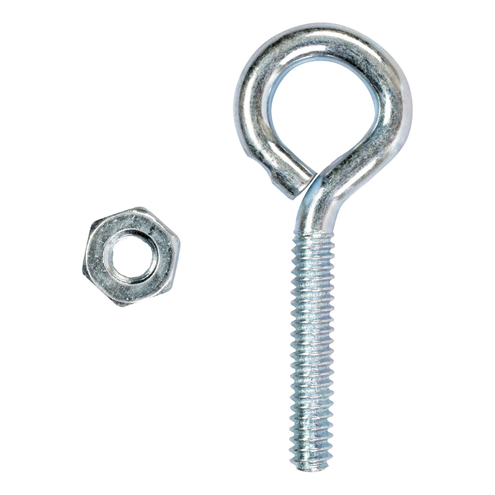 Zinc Eye Bolts with Hex Nuts are ideal for securing ropes and cables. The nut creates a built-in stop that can be adjusted according to the user's needs. These eye bolts are made from forged steel, which has a high degree of tensile strength.Specifications