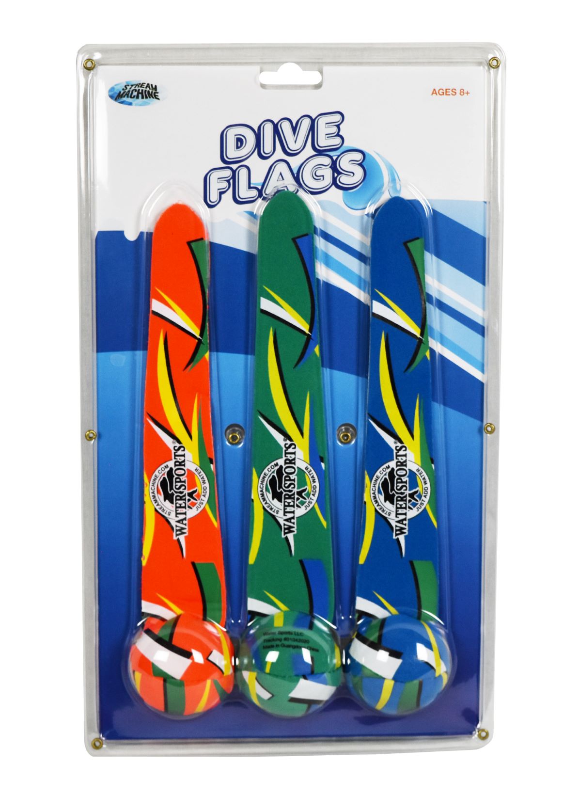 Test your aquatic agility with Stream Machine Dive Flags. Sink these brightly colored flags onto the bottom of a pool and hold your breath and kick your legs. Can you recover the Dive Flags from the bottom of the pool? Spice up your swimming routine with the ultimate test of aquatic athleticism.Specifications