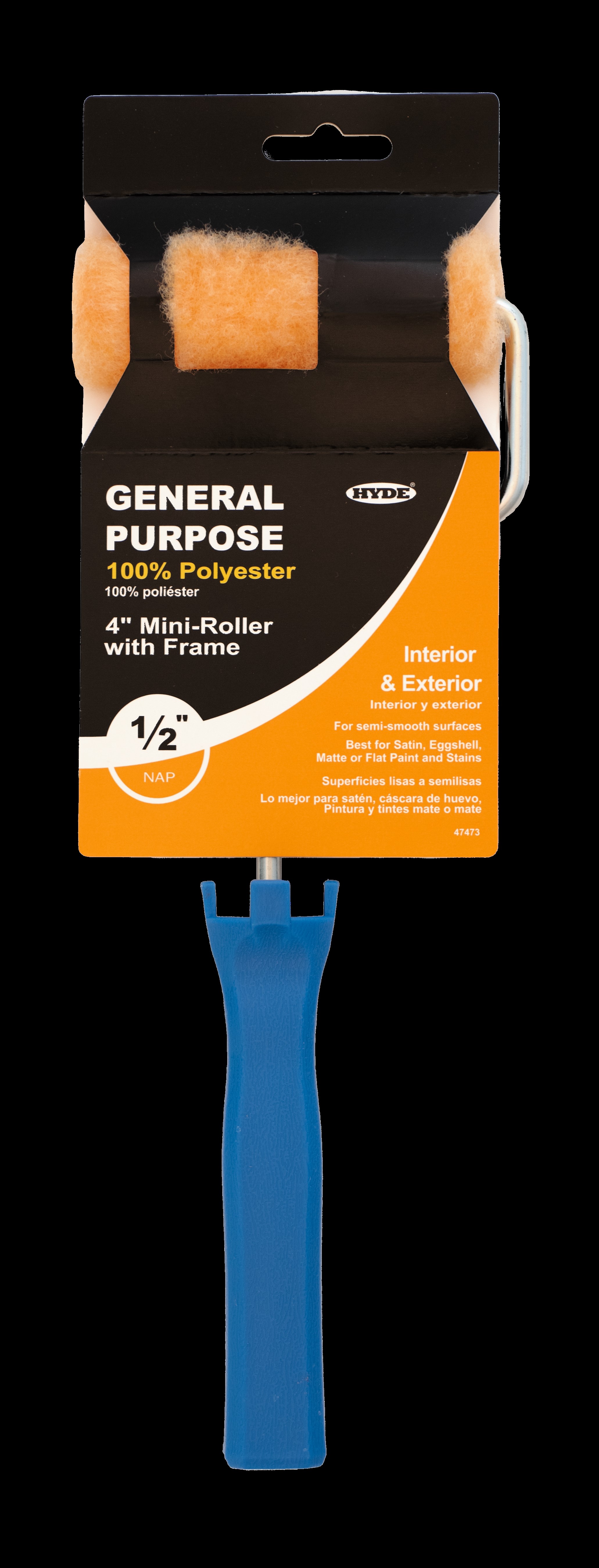Hyde General Purpose covers feature high-density polyester material for more paint coverage. General Purpose covers can be used on interior or exterior surfaces. Best used with low to medium sheen paints and stains. The 4" mini roller is ideal for painting small surfaces or projects.Specifications