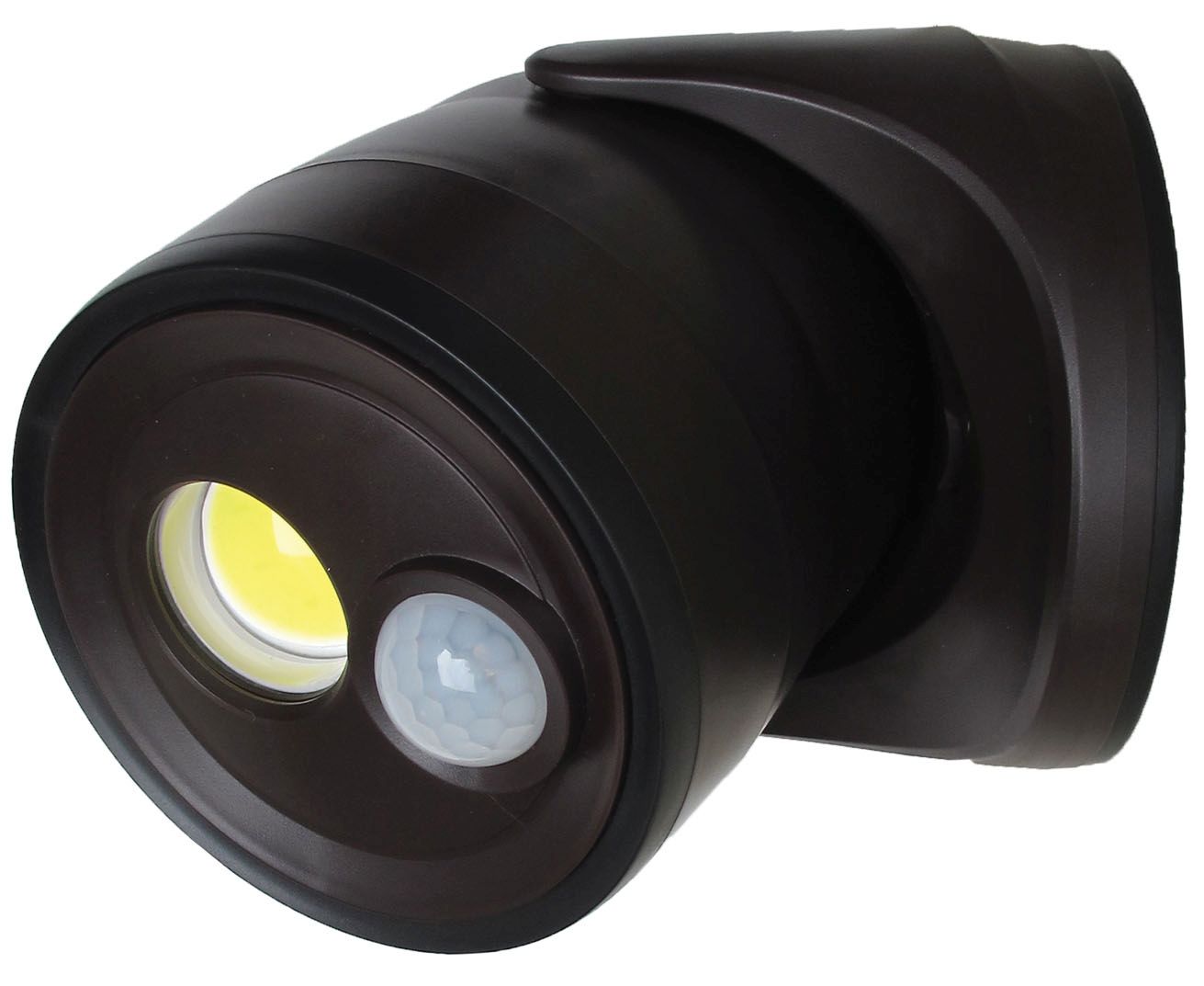 10 foot detection distance; Battery Operated; Color : Bronze; D battery operated batteries not included; Equipped with a motion sensor and mounting bracket; Focus point lens; LED; Motion Sensor; Mounted light is equipped with COB LED technology with 400 lumens of light; Wireless weatherproof light can illuminate outdoor or indoor