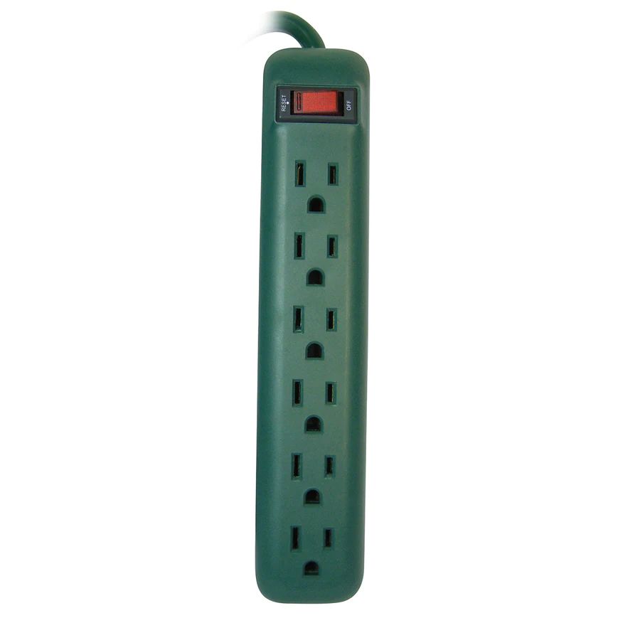 This compact 6-outlet power strip is ideal for use with holiday lighting and decorations. It has an on/off switch with a built-in circuit breaker to protect against overloads and an 18 inch power cord.Specifications