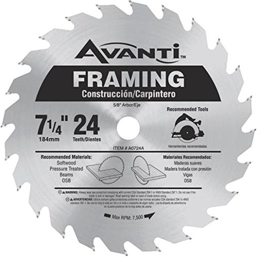Cut, pressure-treated softwood materials, wood beams and boards with this Freud 7-1 / 4 "24T Avanti Blade (A0724A). Ideal for framing projects, it features carbide tips and is durable in construction. Features : -7-1 / 4 "circular saw blade for framing projects. -24 teeth with metal tips. - for cutting softwood, pressure-treated materials, wood beams and 5/8 "Arbor boards.Specifications