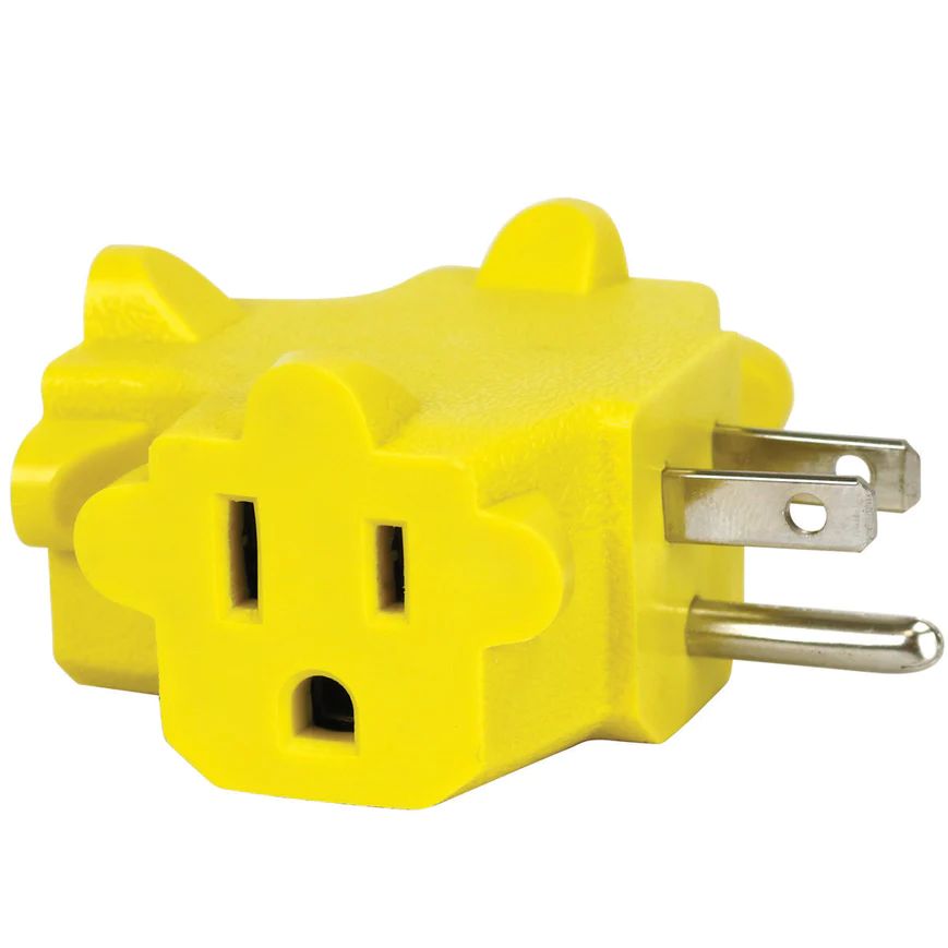Converts a Grounded Grounded Outlet Into 3 Grounded Outlets; High Visibility Yellow is Great for Job Sites; Outdoor Rated When Used with a 12/3 or Larger Extension Cord; Plugs into any grounded receptacle or extension cord; T-shape design allows for use with over-sized transformer plugs