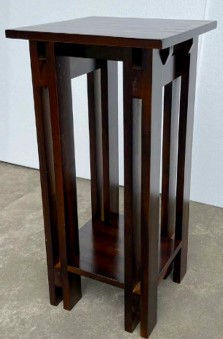 Double Panel Legs w Bevelled Supports; Large format Size Profile; Mahogany Finish; Size 27"h x 13"w x 13"d; Solid Acacia Wood Arts and Crafts Style Plant/Telephone Table in Rich Mahogany Finish; with 35mm Heavy Duty Thick Tabletop