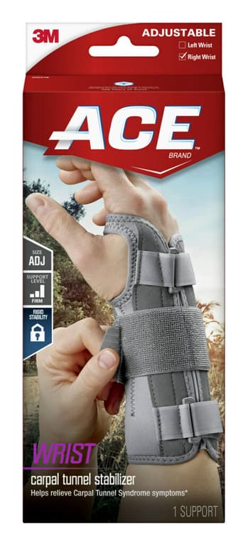 ACE Deluxe Wrist Brace helps provide relief from symptoms associated with Carpel Tunnel Syndrome and other wrist injuries. It provides firm, stabilizing support to injured wrists.Specifications