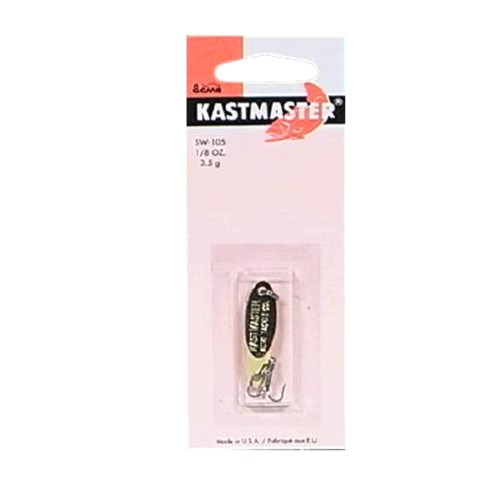 Kastmaster's balance produces wild action without line twist! Because of its aerodynamic design, it's the master distance caster, and catches fish from pan-sized trout to bragging-size stripers - in fresh and salt water. The Kastmaster is machined from solid brass. It won't break, bend or corrode and it retains its luster even after repeated exposure to salt water.Specifications
