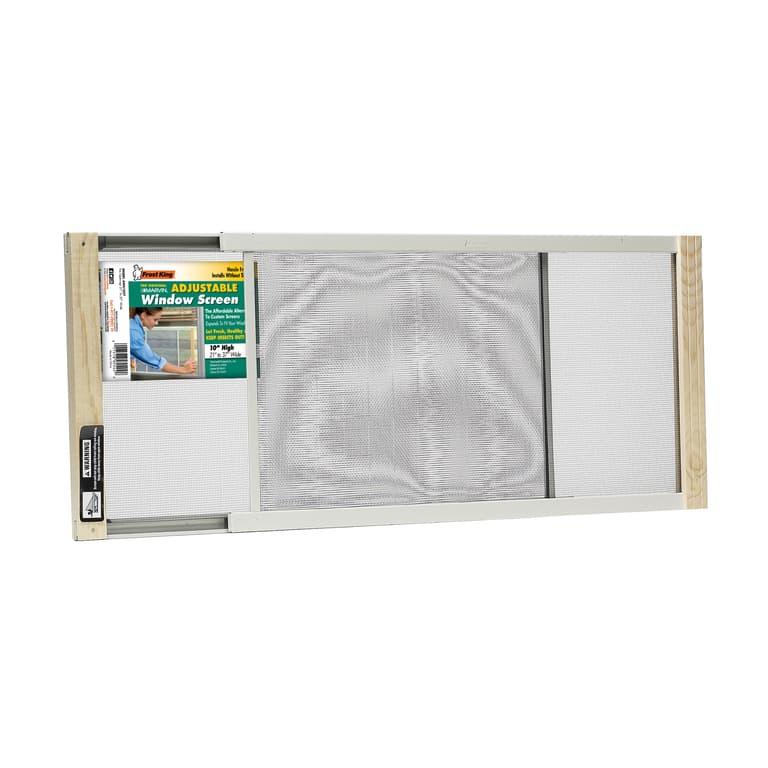 Protect your home from bugs and other unwanted elements by installing the Frost King Wood Frame Adjustable Window Screen. The coated aluminum mesh allows for cooling, ventilating airflow while also blocking flies and other insects. With plated steel rails, this sliding window screen is quick and easy to adjust for a correct fit inside your window. The wooden frame coordinates with other decor in your home. This screen is suitable for apartments, houses, mobile homes and other residences. It's especially handy for keeping your home cool and comfortable during the warmer seasons of the year.Specifications