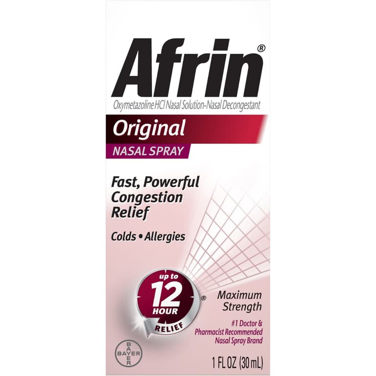Get fast, powerful nasal congestion relief instantly! Original Maximum-Strength Afrin Nasal Spray can have you breathing better. No wonder it's the #1 doctor and pharmacist recommended nasal decongestant spray for congestion caused by colds and allergies.Works for 12 hours Provides nasal congestion relief due to colds or allergiesSpecifications