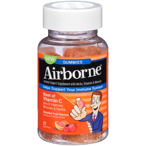21 Gummies; Airborne Immune Support Assorted fruit flavors Gummies; Delicious and easy-to-take gummy form; Gluten Free; Helps support immune system; High in Antioxidants Vitamin A C & E; Naturally & Artificially Flavored; Vitamin C 1000mg - Immune Support Minerals & Herbs