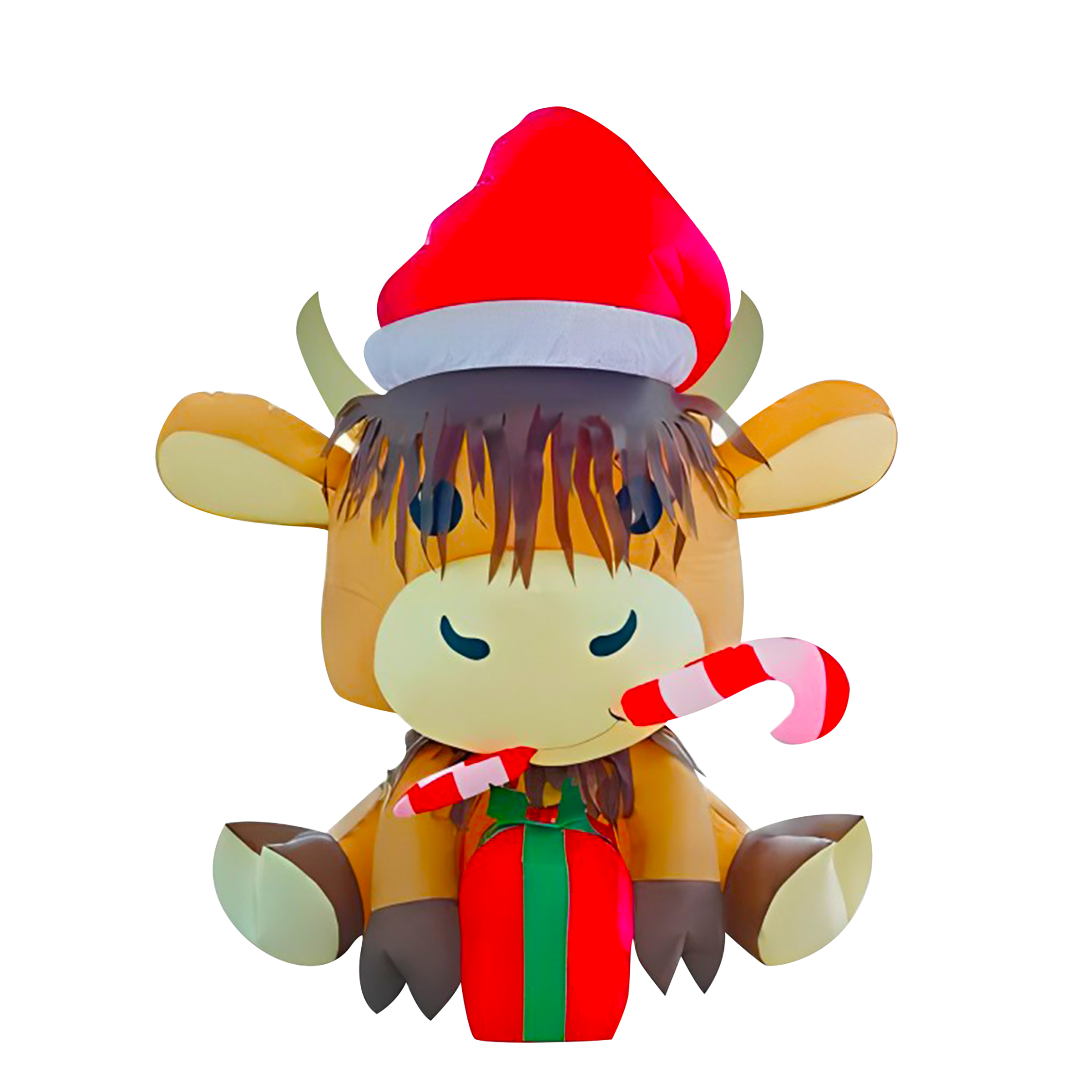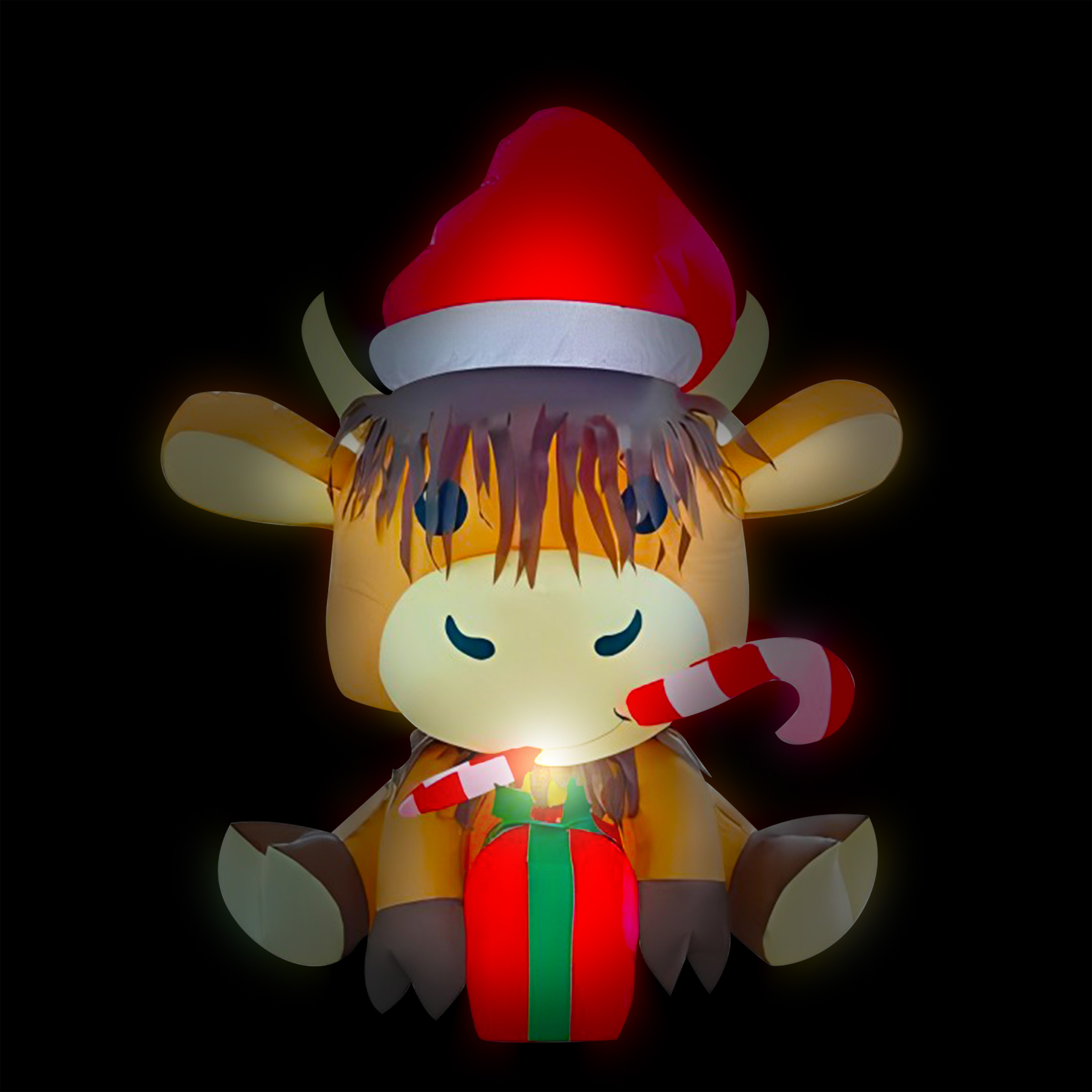 Adorable Highland Cow Design: A festive inflatable adds fun to your Christmas decor. .; Bright Illumination: Two LEDs (50-60 lumens) ensure vibrant day or night visibility; Large & Eye-Catching