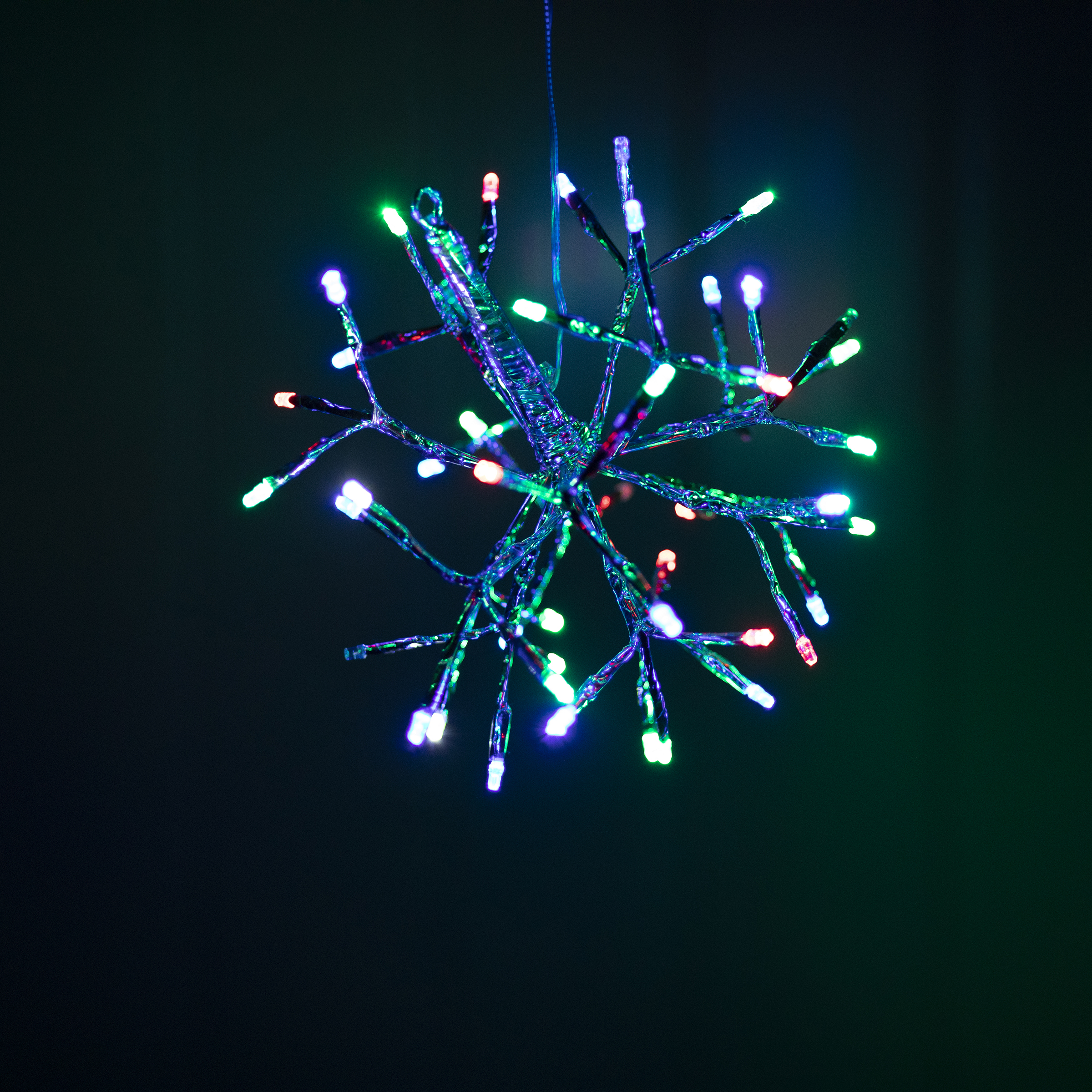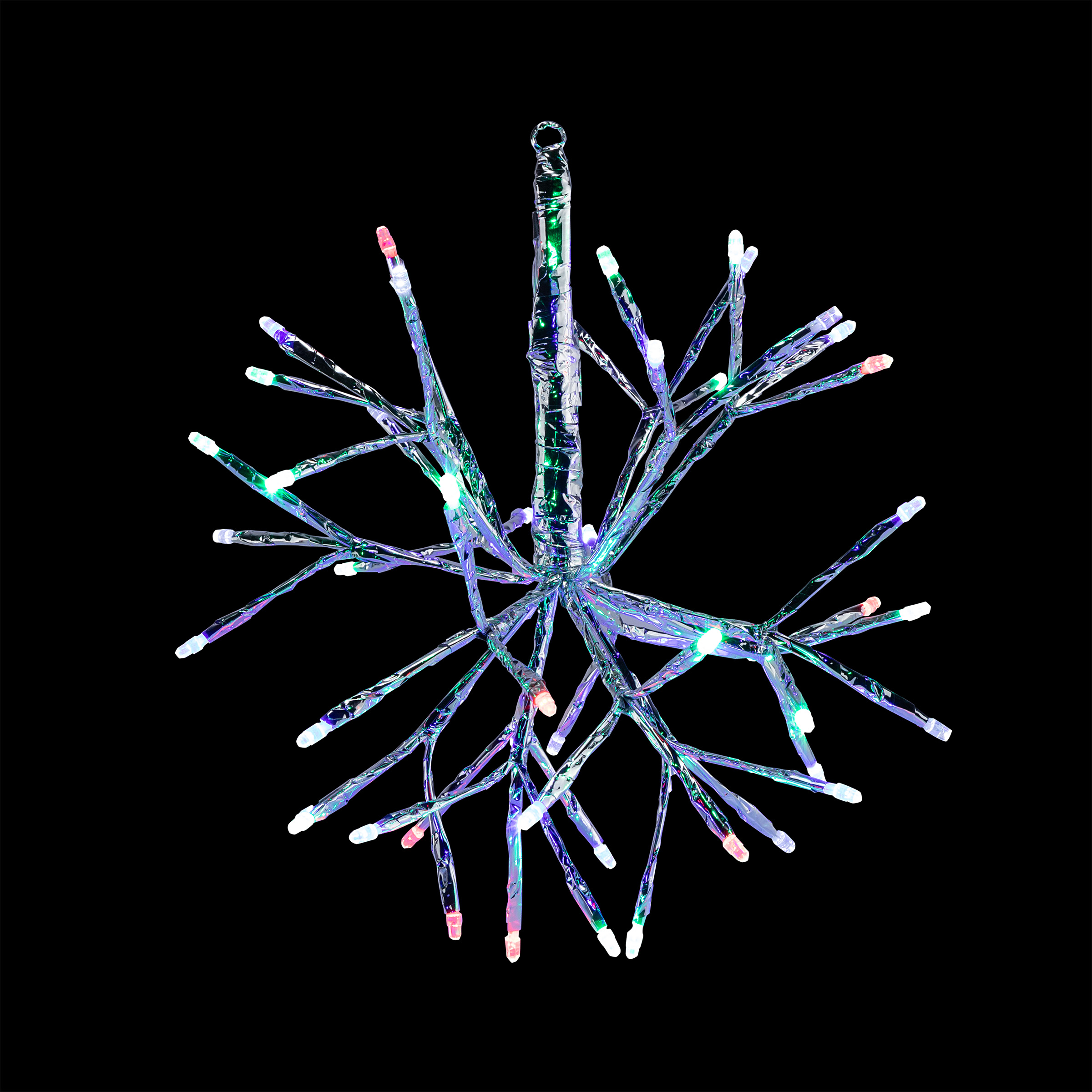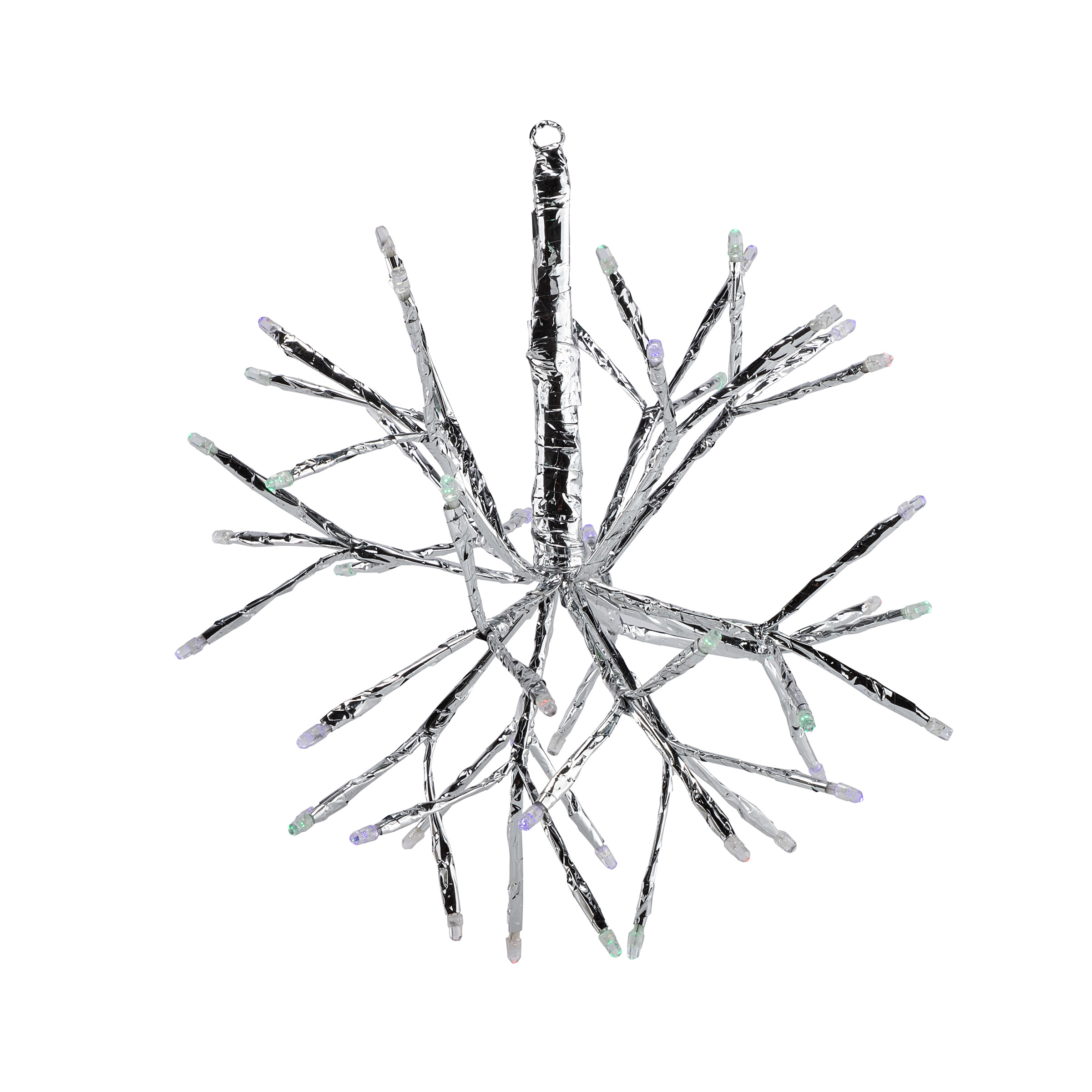 40 colorful LEDs; 8 white twinkling LED lights.; Beautiful branch-design snowflake decor; UNIQUE DECORATIVE PIECE,