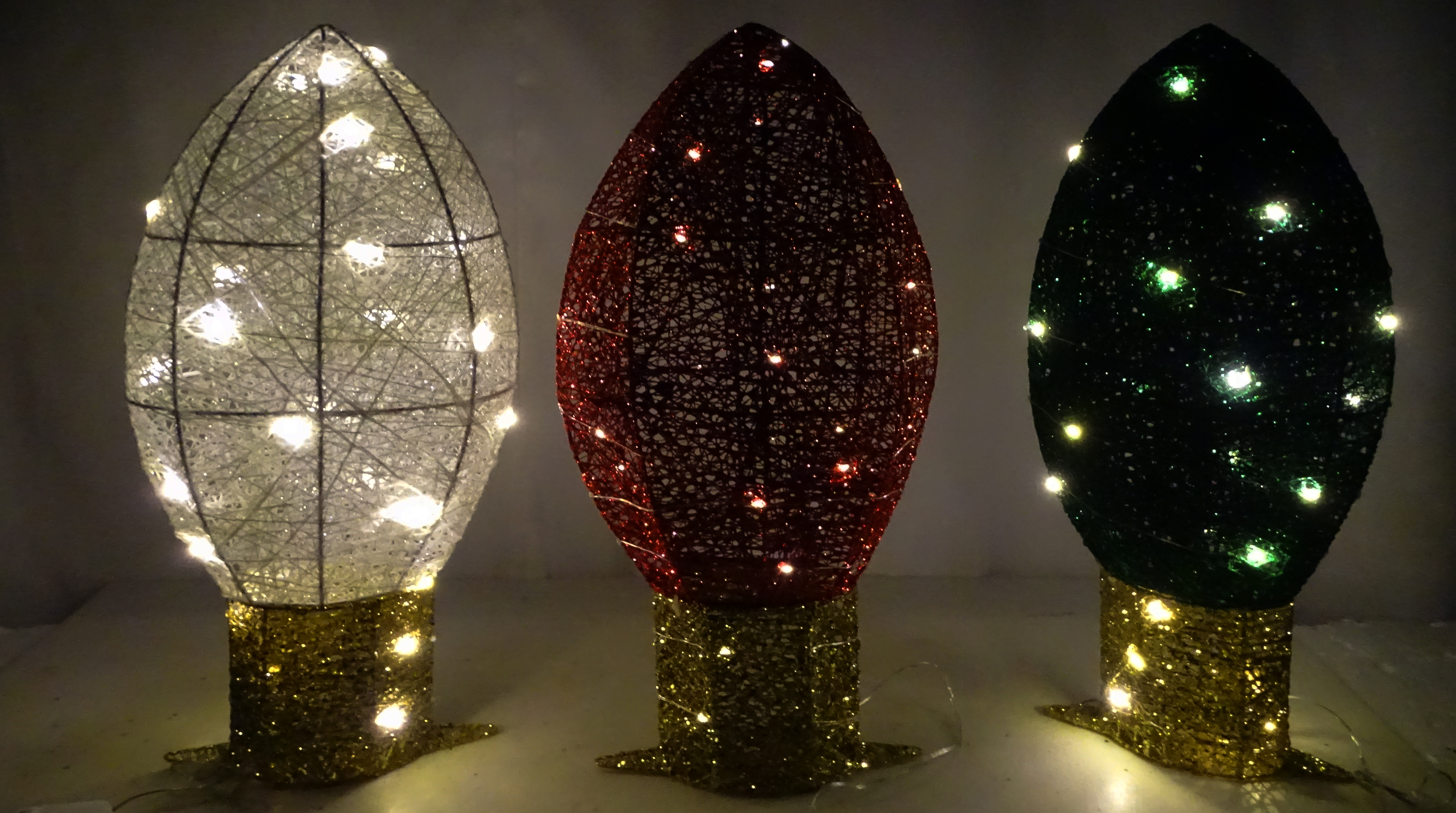 Add a vibrant, festive glow to your holiday setup with the Green/Red/White Thread Light Lamp. Standing at 21 inches tall with dimensions of 9"L x 5"W, this elegant lamp is wrapped in colorful thread accents, perfectly blending traditional holiday hues with a modern design. It features 25 warm white LEDs that emit a cozy 2-lumen glow, creating a soft, inviting ambiance ideal for any space. Powered by a waterproof battery box requiring 3 AA batteries, it offers flexibility for both indoor and outdoor use. Whether placed on a mantel, entryway, or as a centerpiece, this charming lamp brings warmth and holiday spirit wherever it shinesITEMS SOLD SEPARATELY. CAN NOT CONFIRM COLOR WHEN ORDERING ONLINE.Specifications