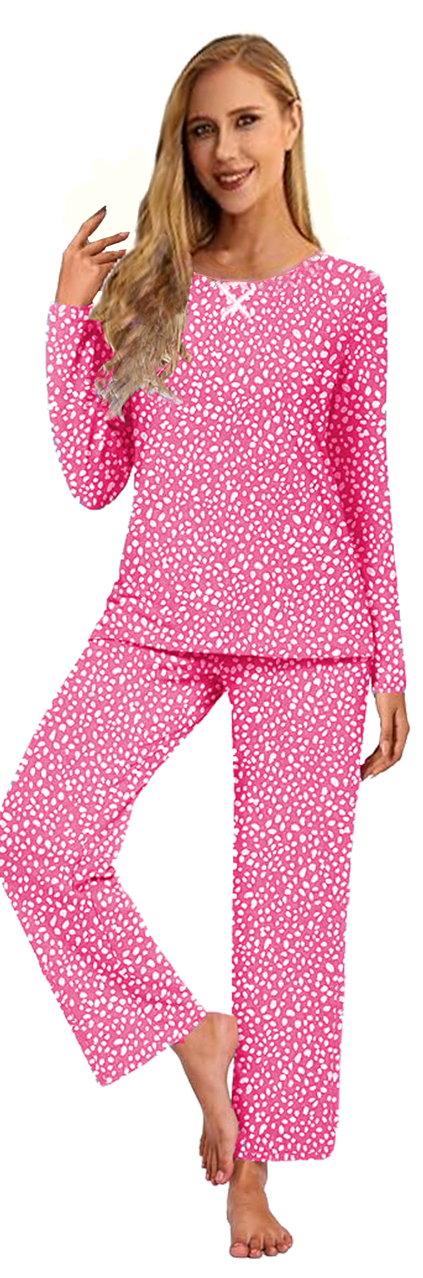 CREW NECKLINE; DRAWSTRING; DROP DOT PRINT; ELASTIC WAIST BAND; FULL PANT LENGTH; LONG SLEEVE TOP