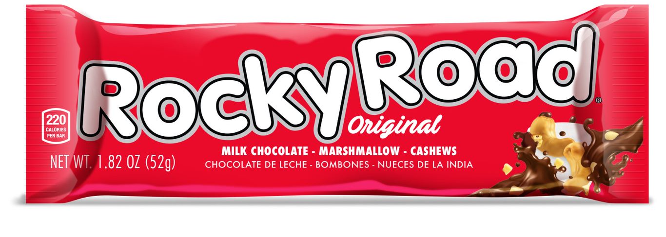 1.82 oz. Candy bar; Delightfully light Fluffy marshmallow; Rocky Road Original Candy Bar; Topped with flavorful roasted cashew nuts and covered with rich milk chocolate.