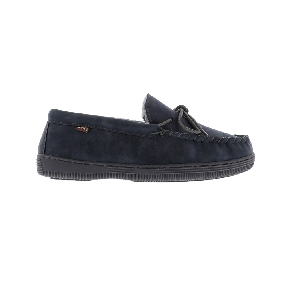 THIS MENS MOCCASIN WITH FULLY LINED FAUX FUR LINING AROUND THE ENTIRE FOOT IS THE PERFECT SLIP ON TO START OR FINISH THE DAY.NOT ONLY WILL IT WARM THE TOES BUT IT HAS A GREAT DURABLE WAXED MICROFIBEER UPPER WITH A GREAT LOOK OF THAT ALREADY BROKE IN FAVORITE PAIR OF SHOES.THE FULLY CUPPED OUTSIDE IS RUGGED ENOUGH TO TAKE ON AN ADVENTURE OR IN THIS CASE YOU DONT WANT TAKE THEM OFF YOUR FEETSpecifications