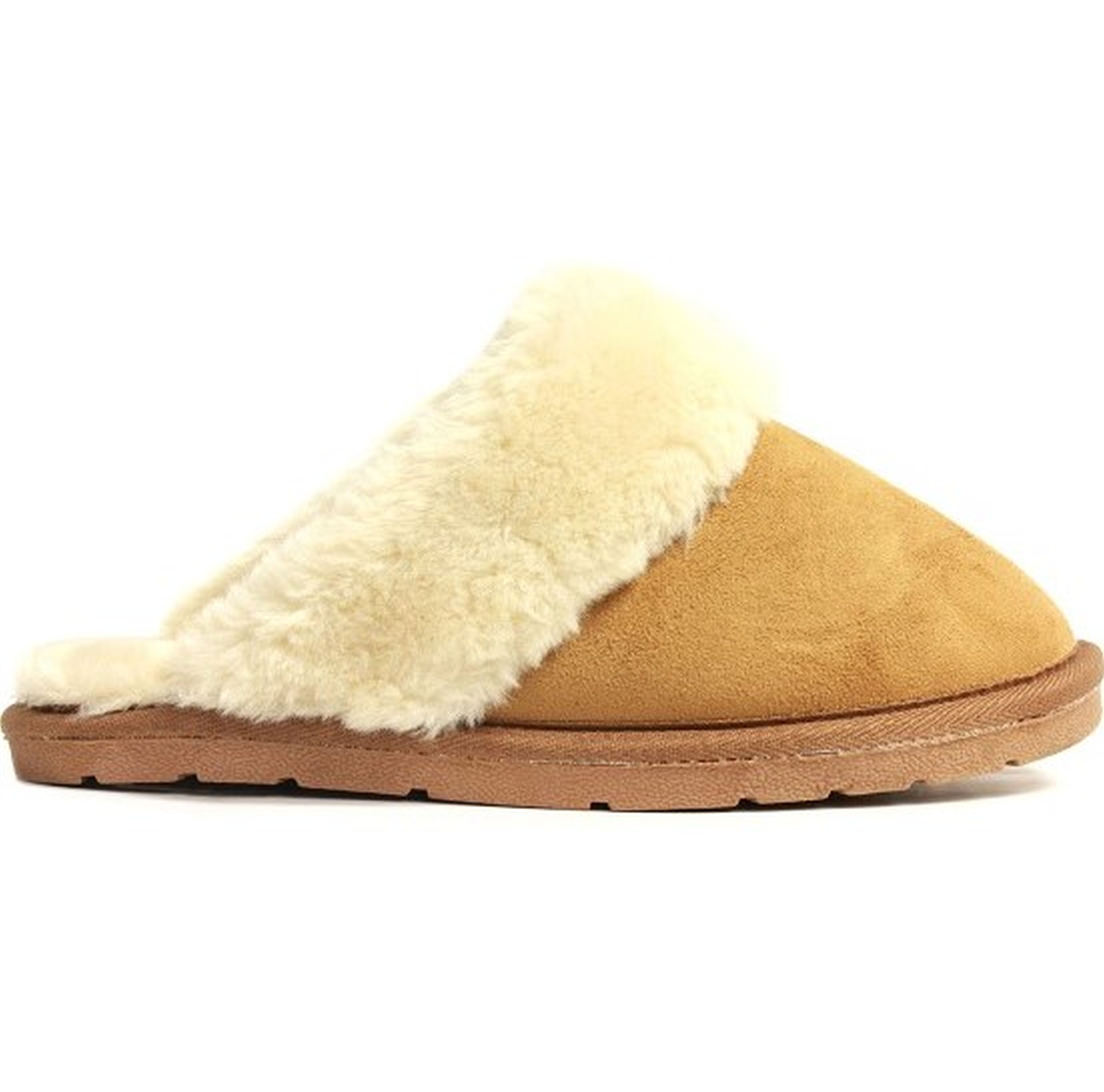 THIS FULLY LINED FAUX FUR SCUFF GIVES YOU COMFORT AND SOFTNESS AROUND YOUR ENTIRE FOOT. CUTE FAUX FUR TRIMMED COLLAR. EASY SLIP ON FOR LOUNGING AROUND THE HOUSE OR GETTING THOSE TOES WARM ON A COOL EVENING. IT HAS A GREAT OUTSOLE IN CASE YOU WANT TO VENTURE OUTSIDE.Specifications