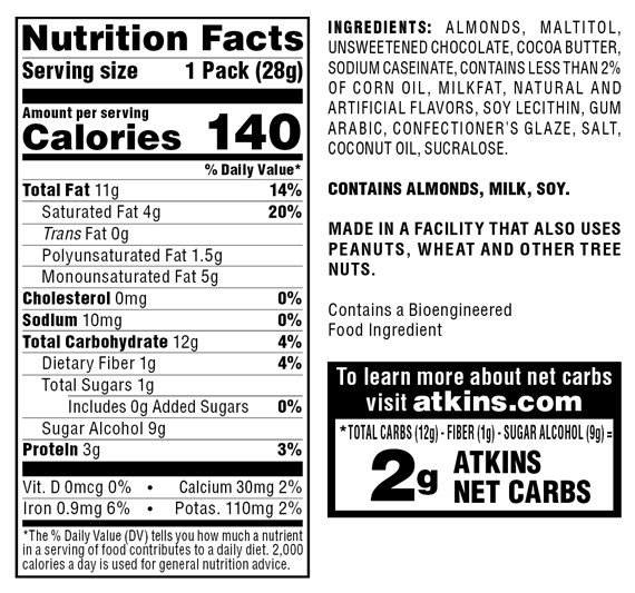 Real roasted almonds dipped in a rich chocolaty coating. This decadent treat with 1g of sugar will satisfy your sweet tooth while keeping you on track.Specifications