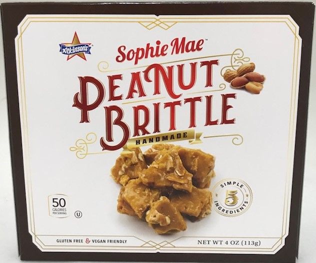 ATKINSON SOPHIE MAE PEANUT BRITTLE IS A HANDMADE DELICATELY FLAVORED TOFFEE THAT COMPLIMENTS THE SALTY PEANUTS. THIS PEANUT BRITTLE IS THE PERFECT ADDITION TO ANY GIFT BASKET OR HOLIDAY GIFT.Specifications