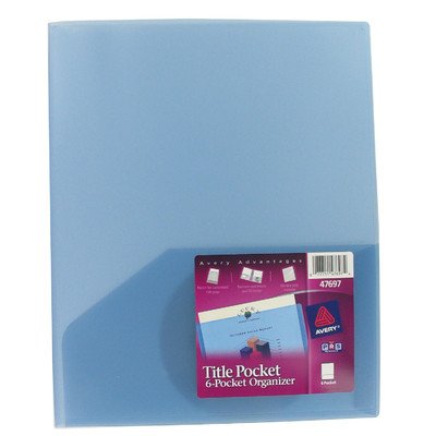 (WE CANNOT GUARANTEE A SPECIFIC COLOR) If you'd like us to choose for you, we are more than happy to do so. If not, please come visit us in store to pick your favorite color. Avery Title-View 6 Pocket Organizer Holds up to 150 Sheets Assorted Color Will Vary 1 Organizer 47697. Organize loose documents and present like a pro with Avery Title-View Pocket 6 Pocket Organizer. This document organizer features 2 inside cover pockets and 4 bound pockets that are designed to hold pages up to 8.5 x 11 in size. Create a memorable first impression as the multi pocket organizer features a clear-view window designed to display your customized cover page. Whether your documents are for school home or work use the predesigned binder templates and designs at avery.com to create your own customized cover page. Keep your documents looking clean and presentable as the non-stick poly material is designed to not to lift print from your pages. Personalize your document folder for any presentation or project as the die-cut card slot located on the front inside pocket allows you to insert a business card. Providing supplemental media to support your documents can create a more impactful presentation. The die-cut CD holder located on the back inside pocket provides the space needed for additional media. Use the versatile document organizer to create a school folder for a class project a presentation portfolio for a business proposal a promotional kit for a trade show and more. The organizer can hold up to 150 documents. The plastic pocket folder is available in light blue or light gray. Color will vary.Specifications