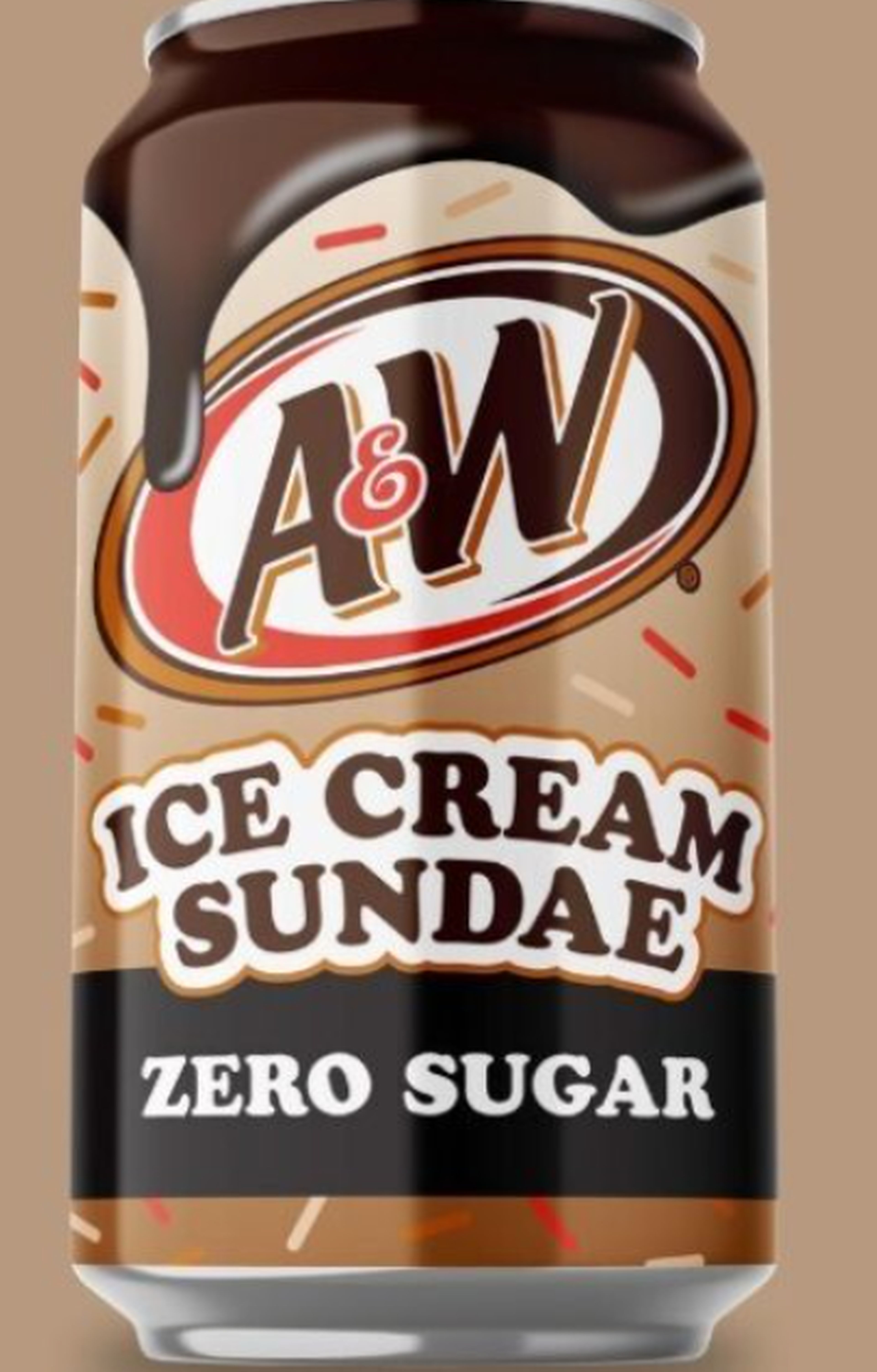 TRY A&W NEW ZERO SUGAR ICE CREAM SUNDAE FLAVORED SODA. THIS NEW FLAVOR COMES IN A 12 PACK OF 12 OZ CANS AND IS THE PERFECT ADDITON TO ALL YOUR CELEBRATIONSSpecifications