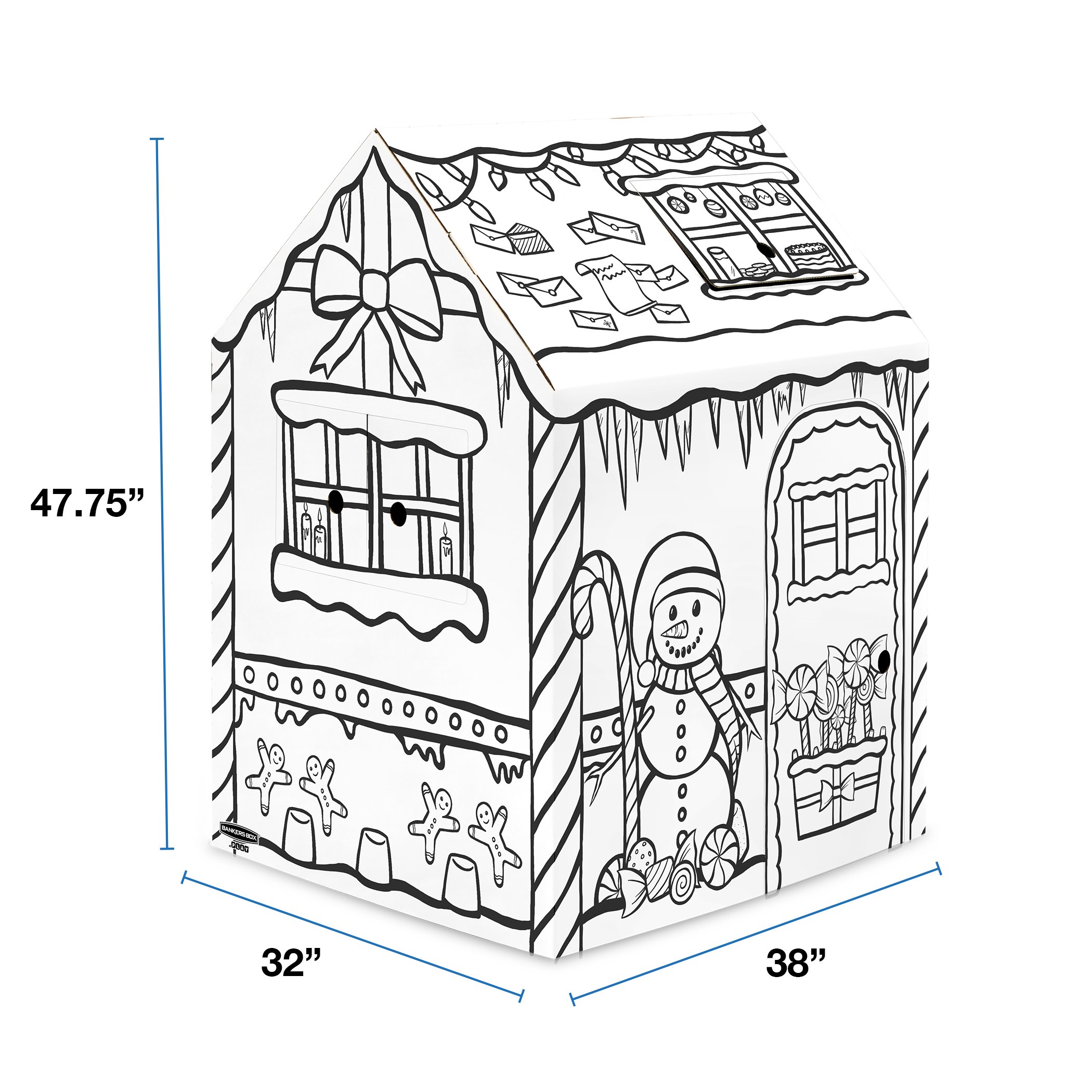 Color Your House: Your child can decorate their Gingerbread Playhouse in any way they want with markers, crayons, or paint, allowing them to exercise their creativity. Strong and Safe Construction: 32-ECT corrugated board with kid-friendly rounded edges provides strength and safety for hours of play. Lead-free design is F963 Standard Consumer Safety Specification certified. For children 3+ years old. Easy 2-Piece Assembly: Playhouse easily folds up and breaks down for storage. Follow the simple instructions to create your 38" L x 32" W x 48" H playhouse. Hands-On Learning: Operable windows and doors provide hours of interactive play. Unleash your child’s imagination and enhance hand-eye coordination as they color within the lines interact with the functional door and window. Made in the USA: Manufactured in the USA and brought to you by Bankers Box, a brand trusted for more than 100 years.Specifications