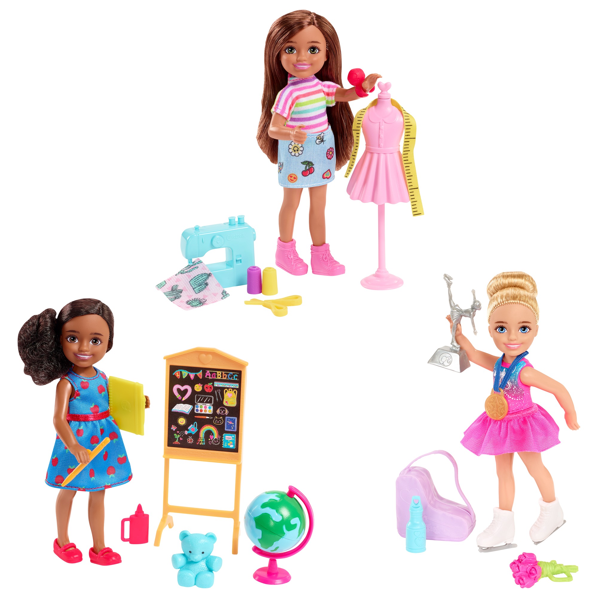 Just like her big sister, Barbie, Chelsea doll loves trying on different career roles! Kids can explore a world of fun with the Barbie Chelsea Can Be doll assortment featuring diverse Chelsea dolls (6-in/15.24-cm) in different career roles. Choose from a pilot, doctor, businesswoman/boss, rock star or builder doll (each sold separately, subject to availability). Each Barbie Chelsea Can Be Career doll features adorable career-themed clothing and career-related accessories to play out the storytelling fun! Each doll sold separately, subject to availability. Dolls cannot stand alone. Colors and decorations may vary. For ages 3 years old and up.Specifications