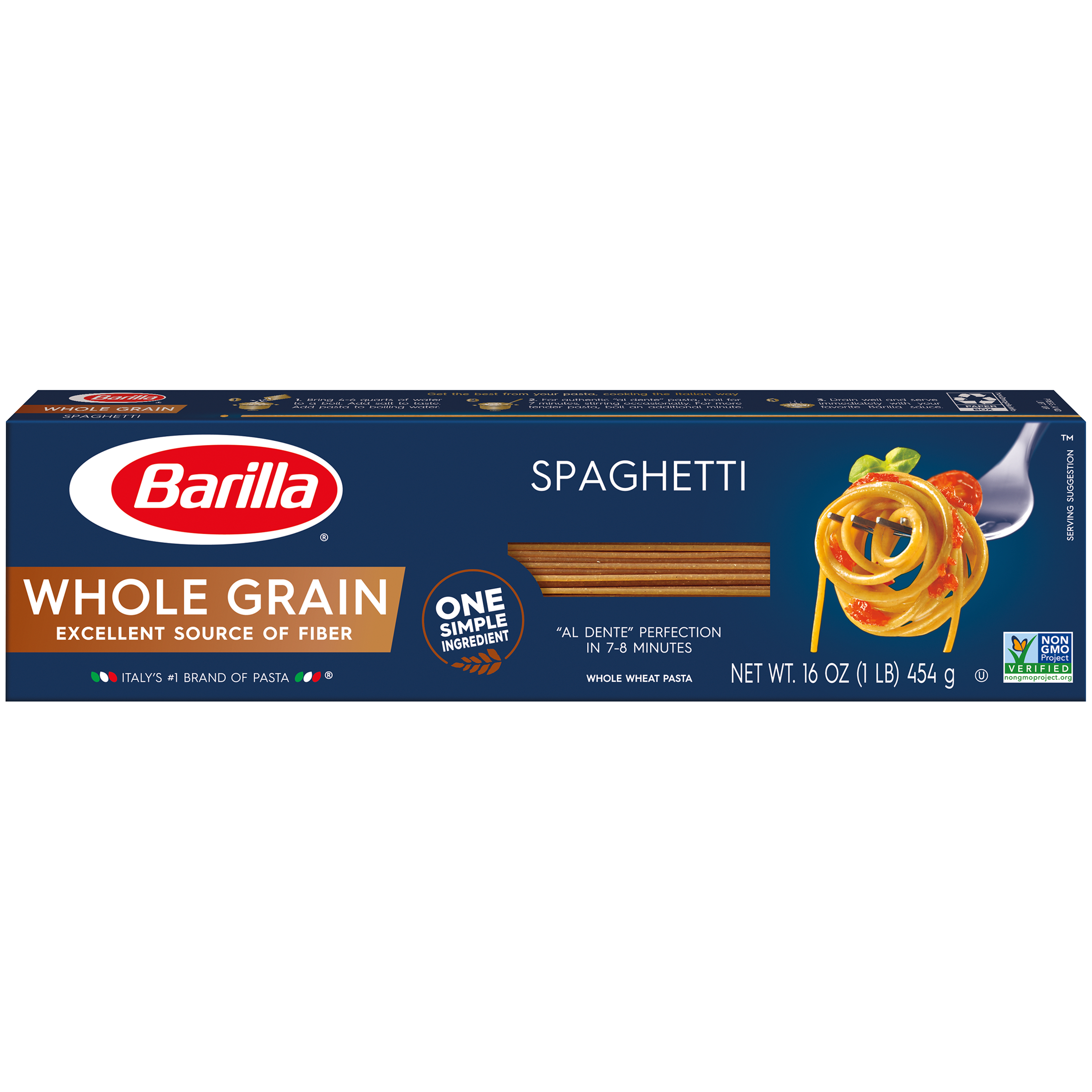 Made with one simple ingredient, whole grain durum wheat flour, Barilla Whole Grain Spaghetti is an excellent source of fiber. This pasta is ideal for anyone seeking to increase their intake of fiber and whole grains without sacrificing taste.Specifications