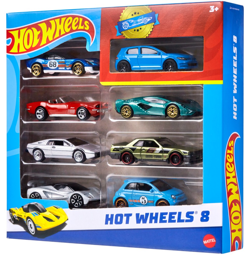 Different mixes released throughout the year for fresh selections; Each pack features 1 exclusive car; Encourages creative play and storytelling; Great gift for kids and collectors; Hot Wheels 8-Car Pack; Includes 8 vehicles in 1:64 scale with authentic styling; Styles, colors, and decorations may vary.