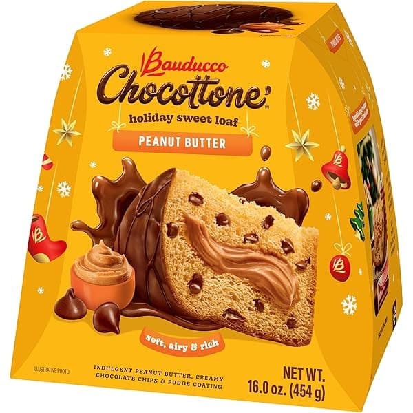 Enjoy BauduccoChocottonePeanut Butter, a moist, tender Italian-style loaf crafted with slow-rise dough and sealed to preserve freshness. This indulgent cake features a creamy peanut butter core surrounded by chocolate accents and is crowned with a silky fudge glaze. Perfect as a festive treat, a thoughtful gift, or a luxurious snack alongside coffee, tea, or dessert wine.Specifications