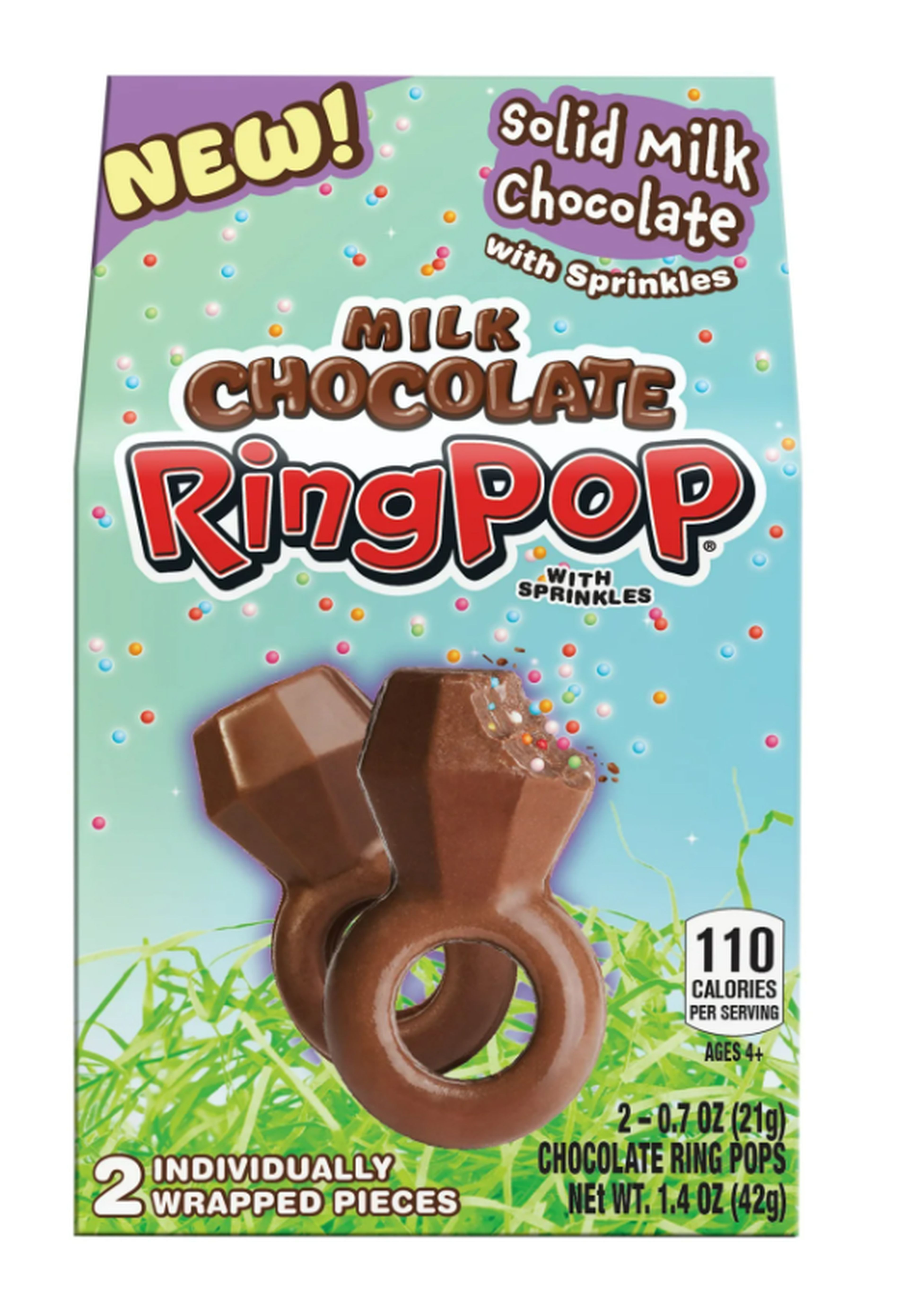 EACH 3D RING POP IS SHAPED LIKE A GEM AND MADE WITH REAL MILK CHOCOLATE AND CRUNCHY RAINBOW SPRINKLES. THIS PIECE IS 21 GRAMS OF SOLID CHOCOLATE TO ENJOY IN MULTIPLE BITES.Specifications