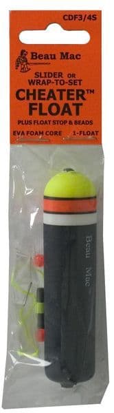 The Cheater Dudnik float features Beau Mac's patented wrap to set inner slider tube. Allowing you to easily adjust your lure depths on a whim. No more tweaking bobber stops, and you now have the capabilities to use these bad boys for a traditional inline slider float as well.Specifications