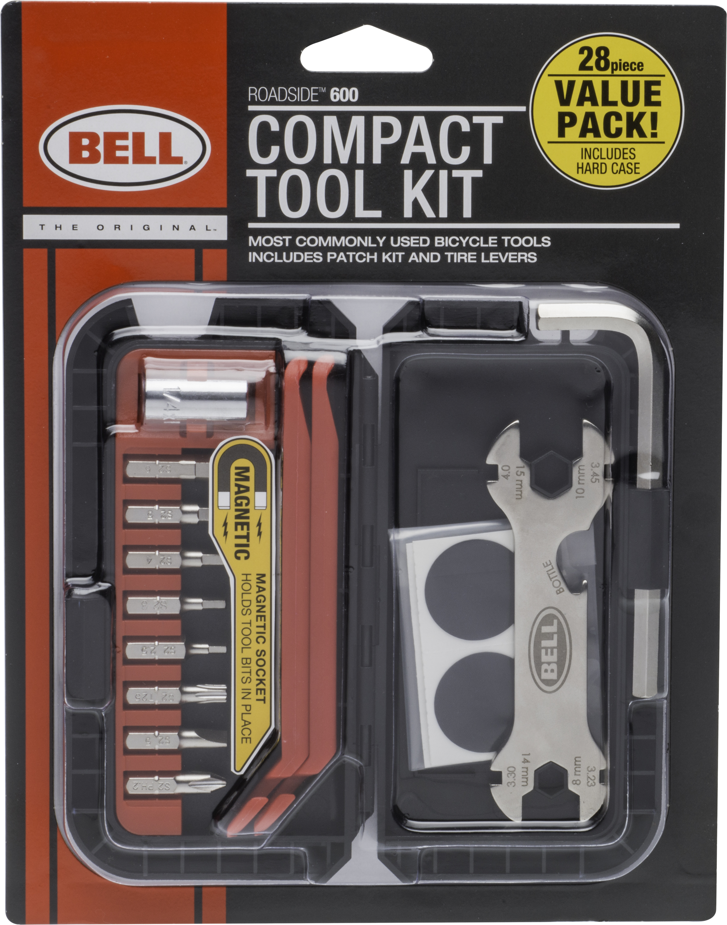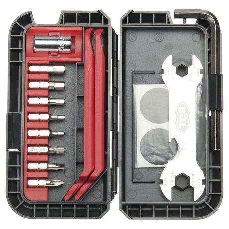 The Bell Sports Roadside bicycle tool and patch kit includes everything you need to get your bicycle back on the road. Features magnetic socket which holds tool bits in place. Includes L-shaped hex key magnetic socket 5 hex bits philips head bit flat head bit and torx T25 bit.Specifications