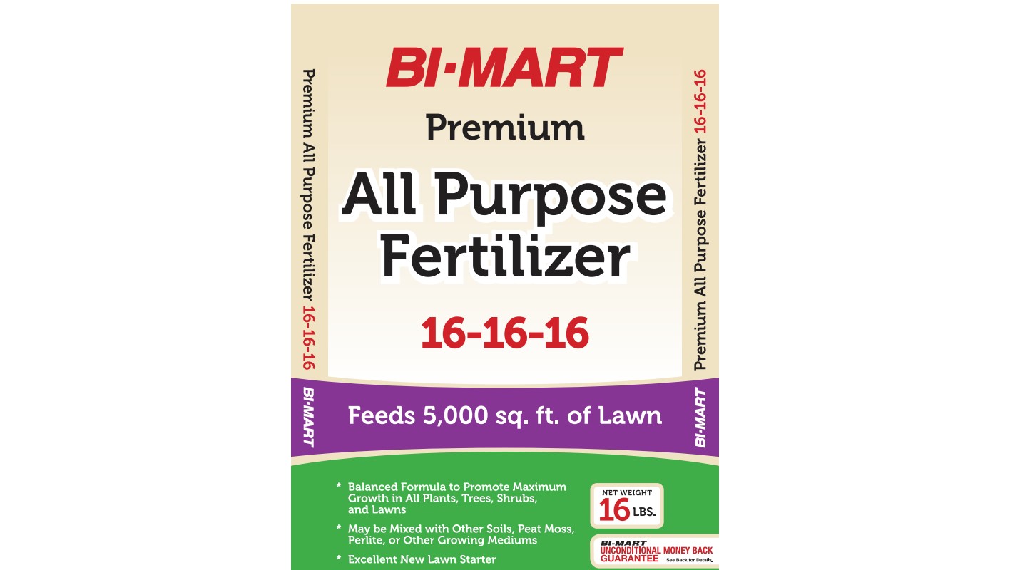 Bi-Mart Premium All Purpose Fertilizer. Feeds 5,000 square feet of lawn.Specifications