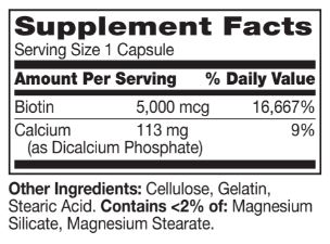 BIMART BIOTIN 5000 MCG 100 CAPS to help support healthy hair skin & nails in a gluten free formula.Specifications