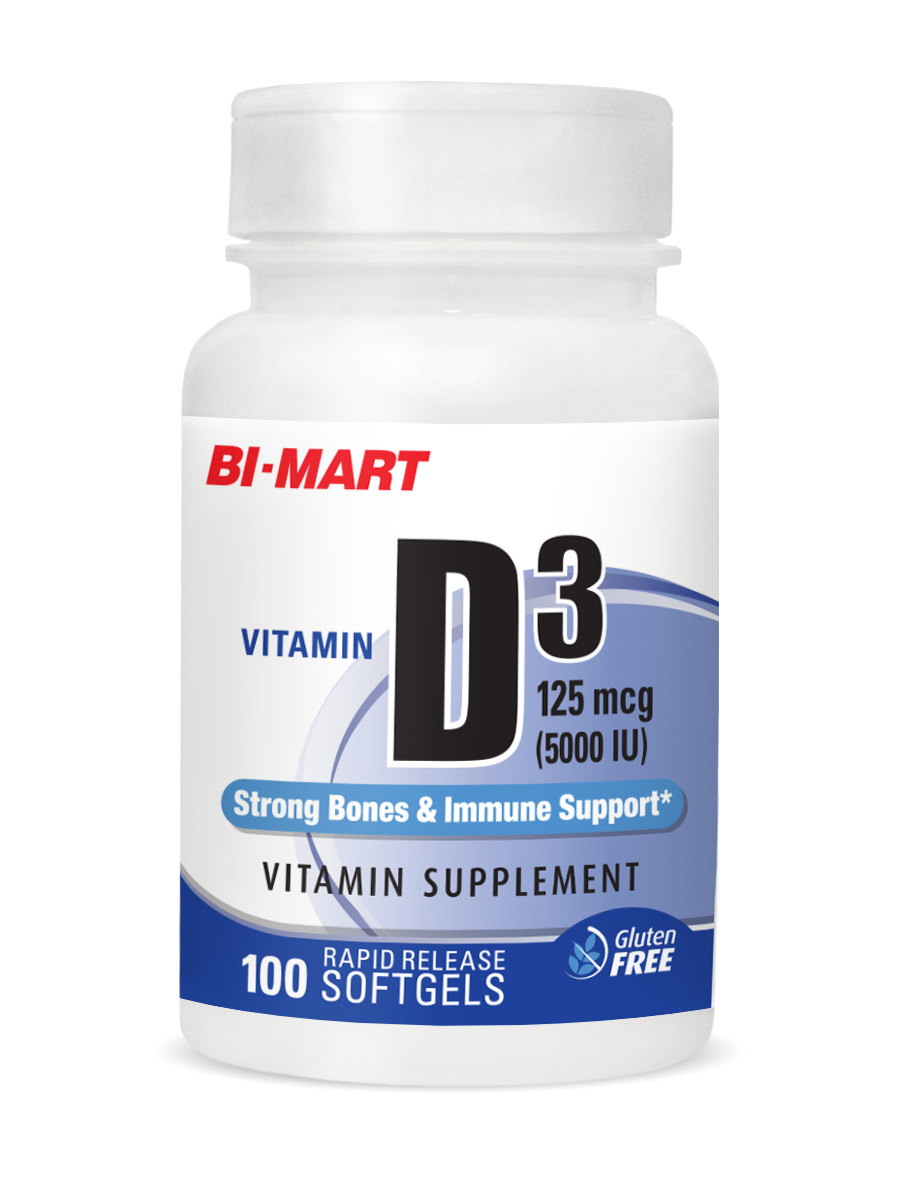 Vitamin D3 is essential for absorption of calcium and supports bones, teeth and the immune system. Rapid Release Softgels. Promotes Strong Bones & Immune Support; Gluten Free; Vitamin Supplement; 125 mcg; 5000IUSpecifications
