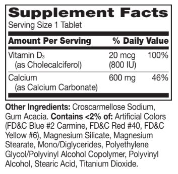 Adequate calcium is important for teens and young adults and post-menopausal women; Gluten Free; Helps support strong bones and teeth; Vitamin D helps improve calcium absorption