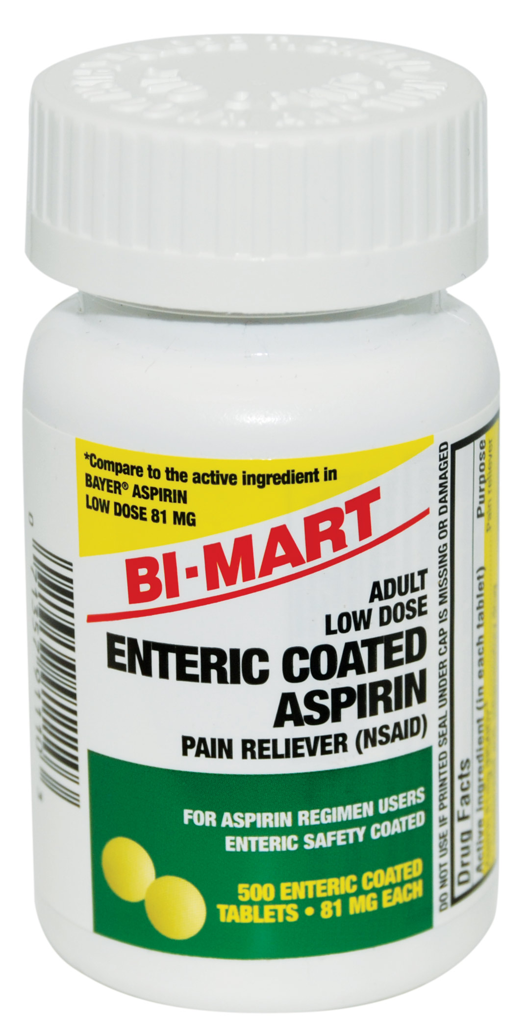 Temporarily relieves minor aches and pains. Adult aspirin regimen. Safety coated Coating helps protect against stomach upset. Doctor recommended. Gluten free. Talk to your doctor before starting an aspirin regimen. Aspirin is not right for everyone.Specifications