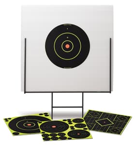 Birchwood's Shoot-N-C Portable Range is ideal for rifles, pistols and shotguns and has a footrest for easily pushing it into the ground to prevent turning in the wind. It's constructed from heavy-duty welded steel, yet it's lightweight and simple to set up. Included is one 18" x 18" durable, plastic backboard, 13 self-adhesive targets, and 2-12" bull's-eye targets.Specifications