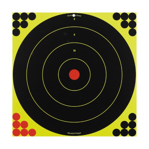 Birchwood Casey Shoot-N-C Targets explode with color upon impact, revealing bullet holes with bright chartreuse rings. This revolutionary design provides instant feedback with no need to walk down-range or use binoculars to see your shot. The 17.25" bull's-eye is great for long-range rifle shooting, 200 yards and beyond. The greater surface area makes them the perfect choice for use with muzzleloaders, shotgun slugs, and to show shotgun patterning. Shoot-N-C Targets are great for indoor or outdoor use and low-light conditions, and the self-adhesive backing makes them easy to put up. Comes with 200 repair pasters to lengthen target life. Five targets per package. Model #: 34185.Specifications